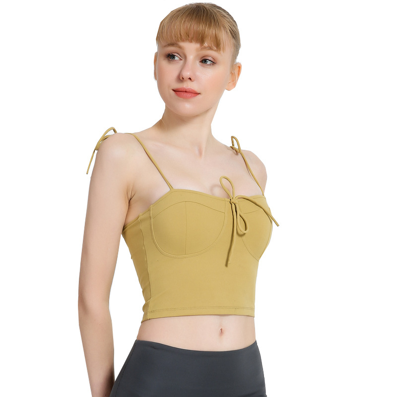 春夏新款瑜伽背心女带胸垫系绳裹胸运动健身吊带舞蹈训练bra