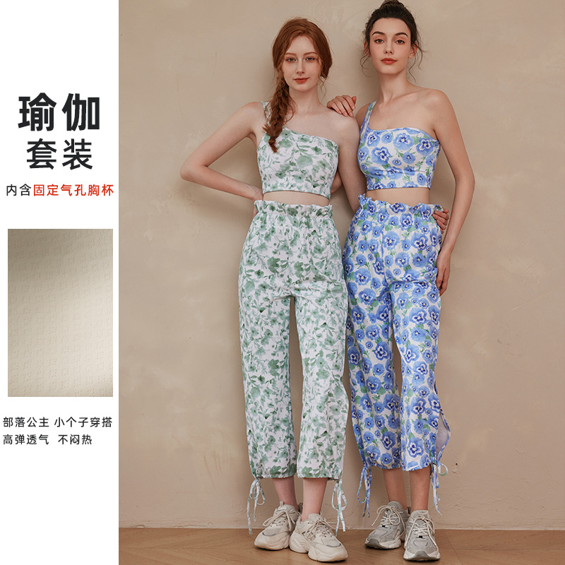 部落公主禅意瑜伽裤打坐直筒瑜伽健身裤花瓣式腰头扎染印花运动裤