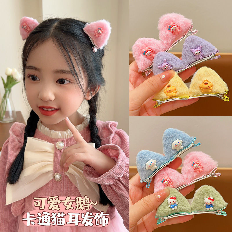 可爱卡通毛绒对夹猫耳朵儿童发夹小女孩甜美侧边夹宝宝刘海夹发饰