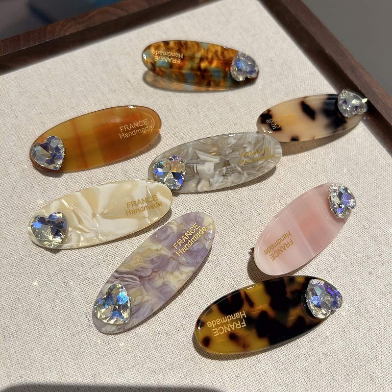高级感爱心水晶小发夹醋酸刘海夹网红前额碎发夹时尚小发卡发饰品