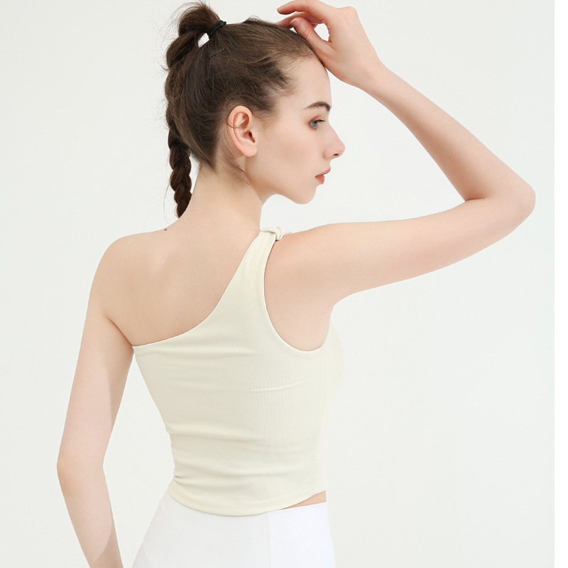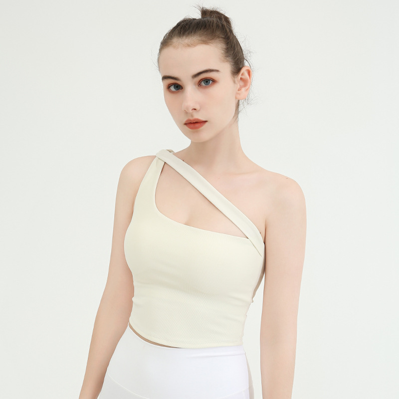外贸不规则坑条瑜伽上衣女吸湿排汗健身跑步舞蹈运动背心女含胸垫
