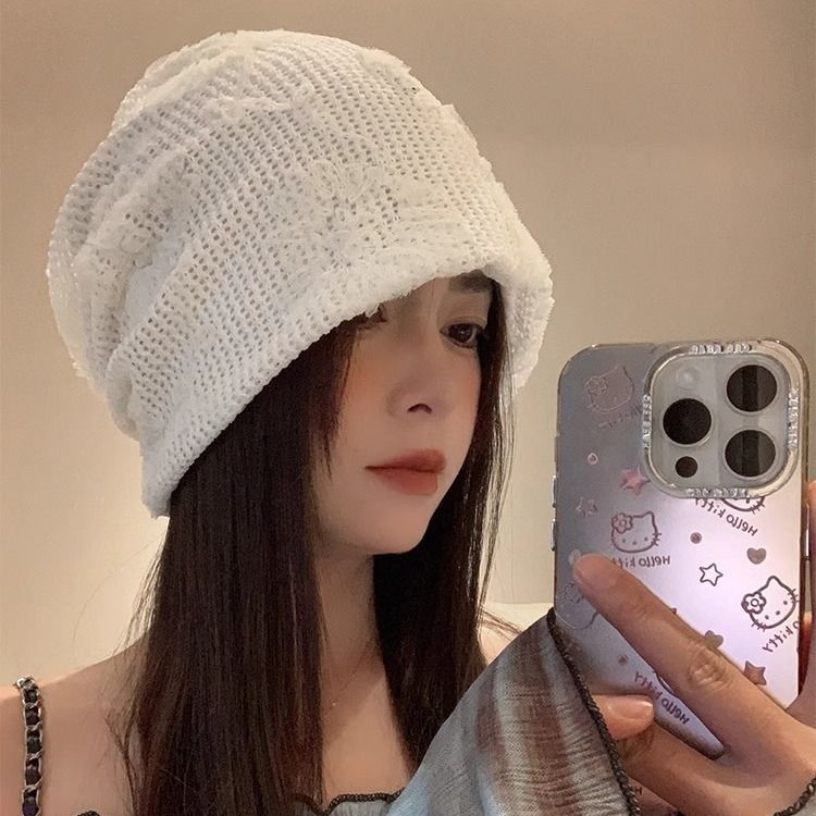 冷淡风宽松花朵堆堆帽子女春夏氛围感百搭薄款透气大头围包头冷帽