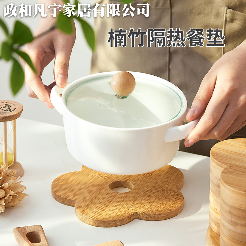 隔热垫餐桌家用杯垫花瓣餐垫楠竹耐高温防烫砂锅垫碗垫一件代发