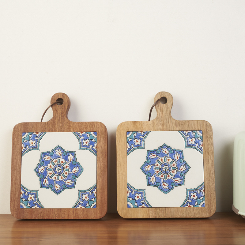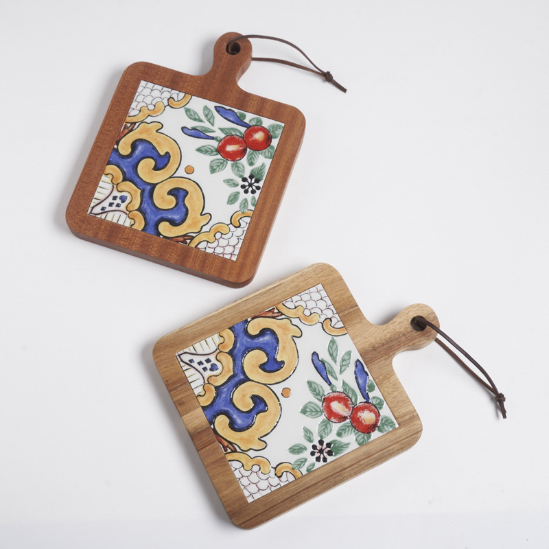 实木复古花砖餐垫隔热垫创意餐桌垫防烫砂锅垫子大号锅垫日式新款