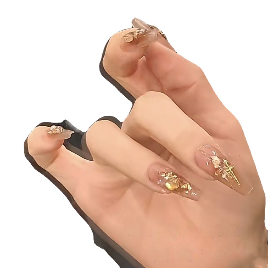 纯手工光疗穿戴甲 贝壳金箔穿戴甲批发成品重复使用美甲贴片