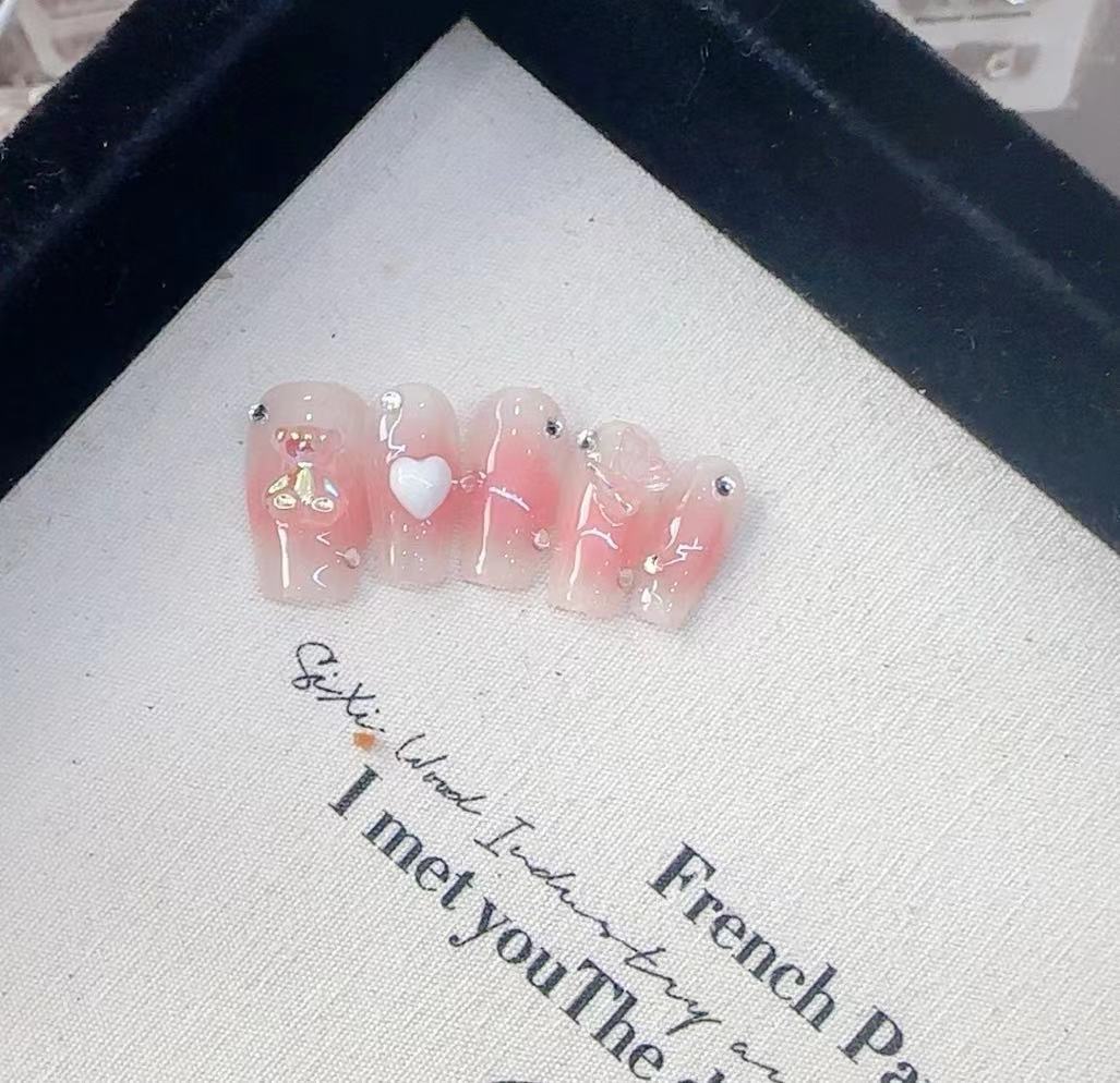 奈姿 纯手工光疗穿戴甲小熊腮红批发成品重复使用美甲贴片可拆