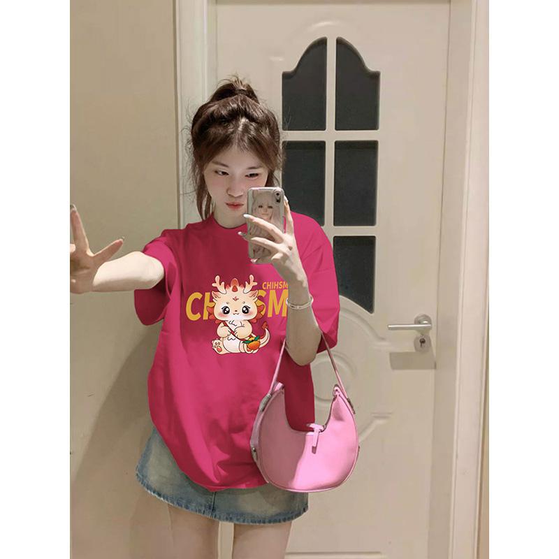 龙年本命年短袖t恤女宽松休闲印花设计春季新款小众圆领上衣