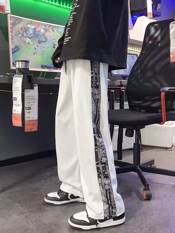 春秋高街美式直筒裤男痞帅休闲裤校园男生百搭拼色腰果抽绳运动裤