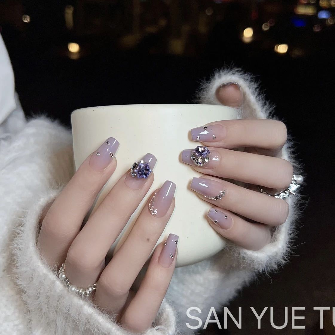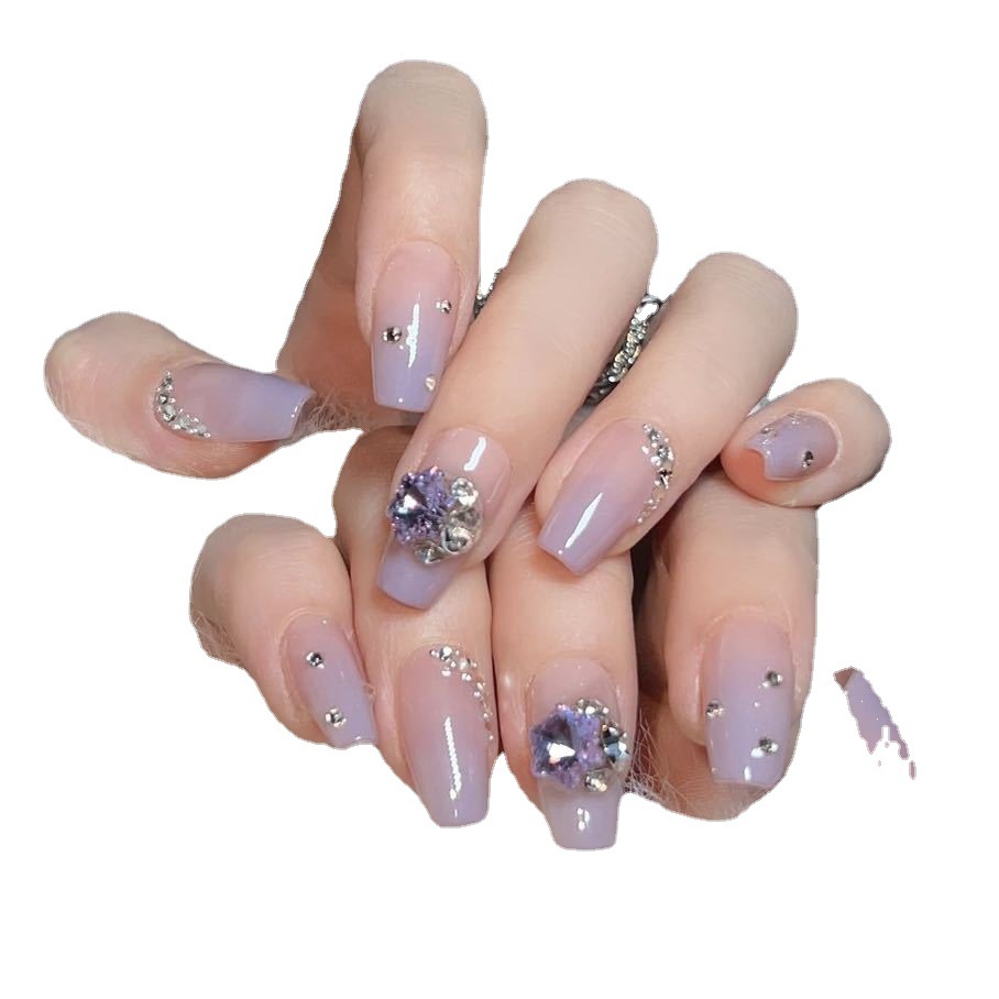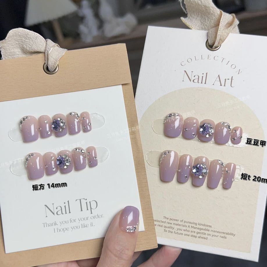 纯手工光疗穿戴甲加伦紫带钻穿戴甲批发成品重复使用美甲贴片可拆