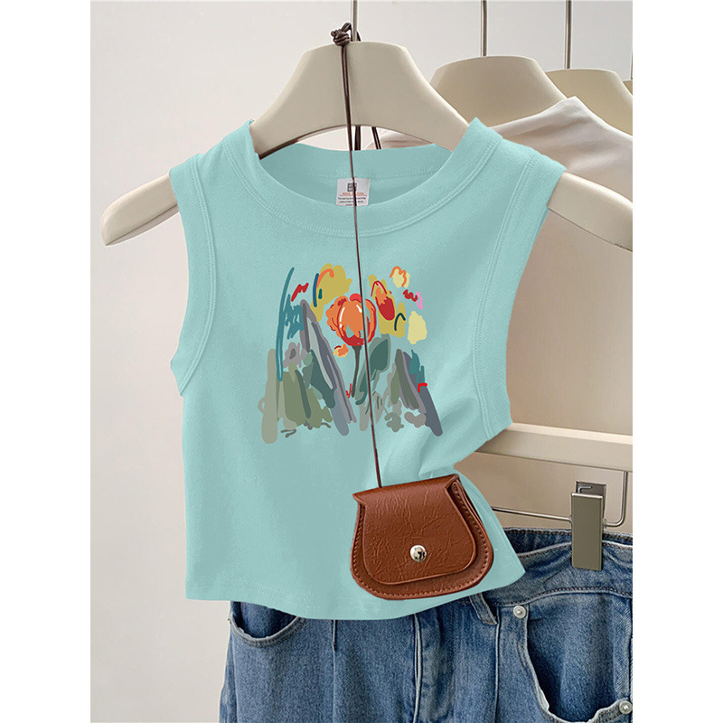 美式浅绿色无袖外穿吊带小背心女夏季新款修身显瘦短款上衣服