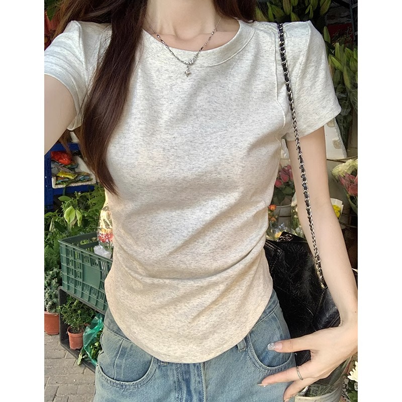 韩版简约休闲圆领上衣百搭纯色显白女款短袖夏季短款辣妹T恤