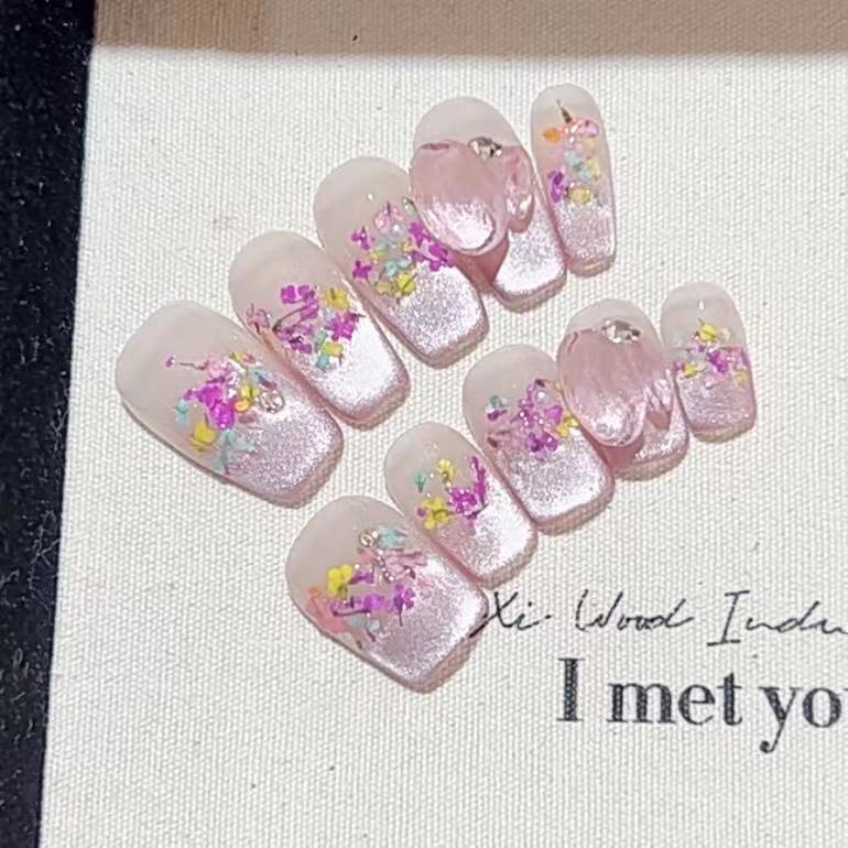 纯手工光疗穿戴甲柏林花事批发成品重复使用美甲贴片可拆卸猫