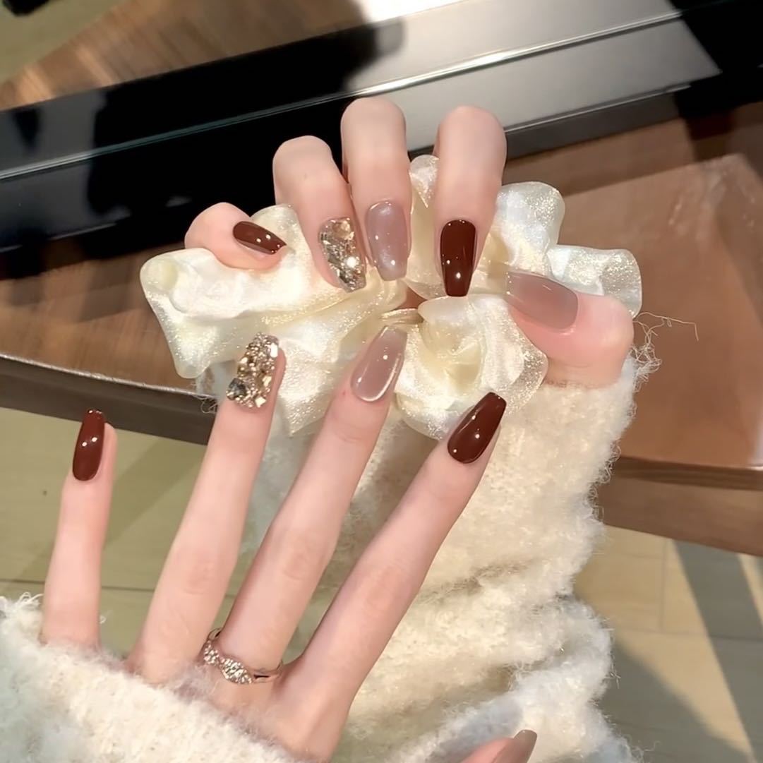 手工穿戴甲初秋款纯欲爆闪轻奢香槟碎钻可拆卸穿戴甲成品指甲贴片