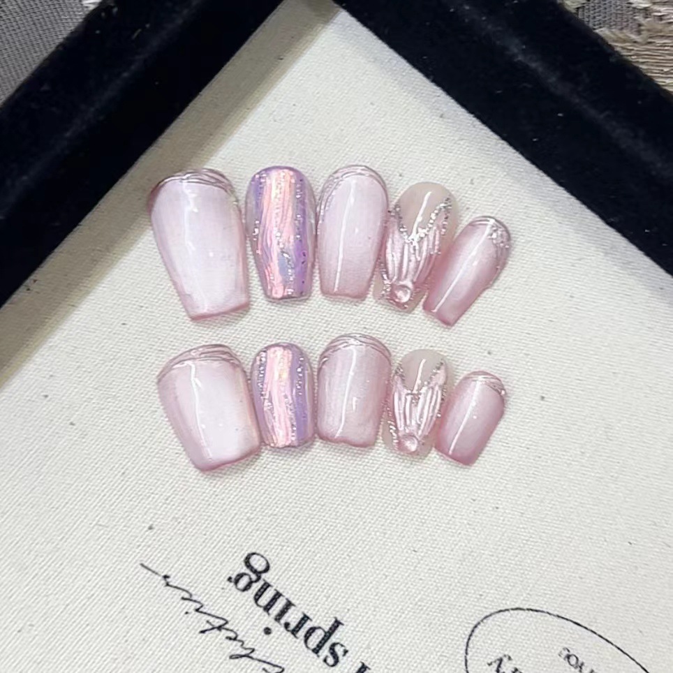 美甲纯手工光疗穿戴甲粉猫眼云水间原批发成品重复使用美甲可拆卸