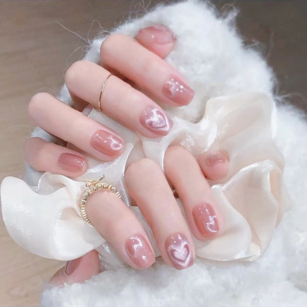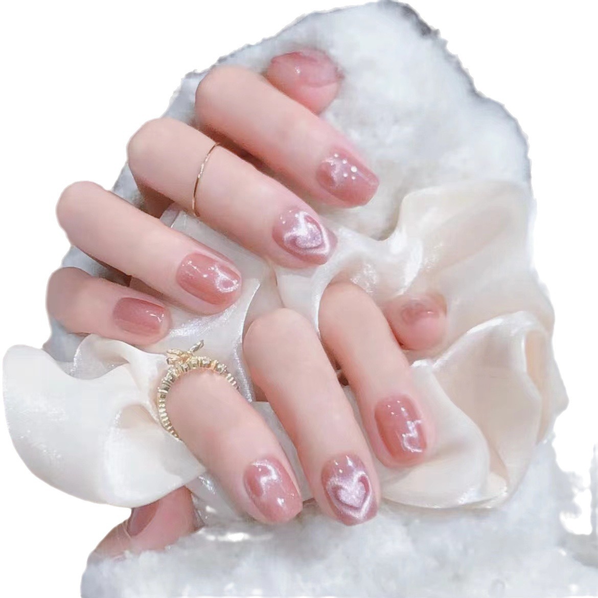 纯手工光疗穿戴甲心心相印批发成品重复使用美甲贴片可拆卸猫