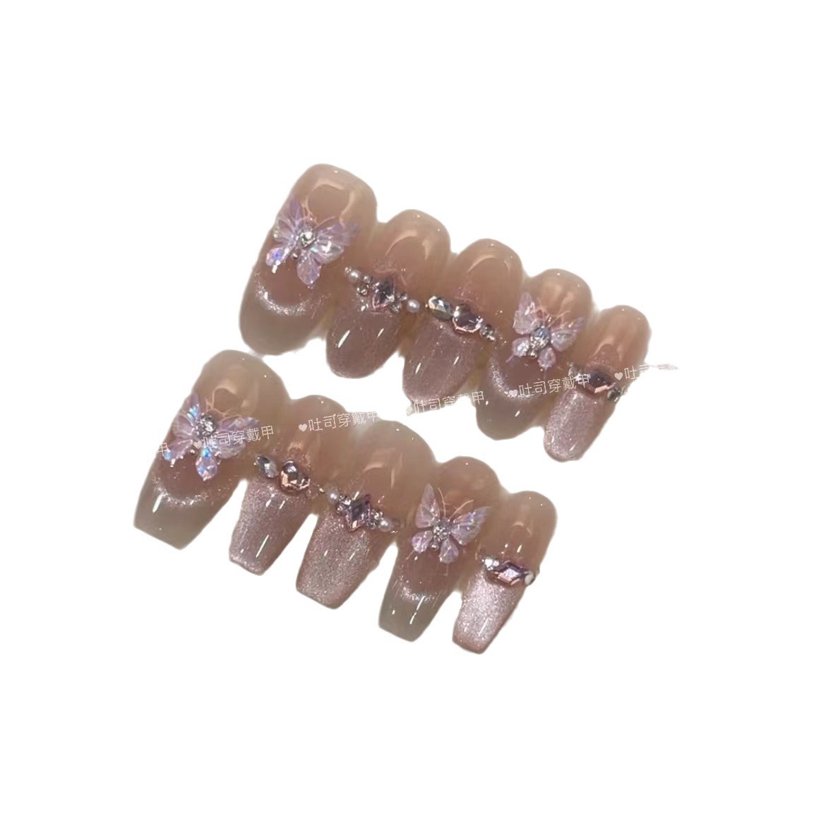 纯手工穿戴甲闪粉蝴蝶爆闪腮红镶钻拉线温柔复古显白可拆卸美甲贴