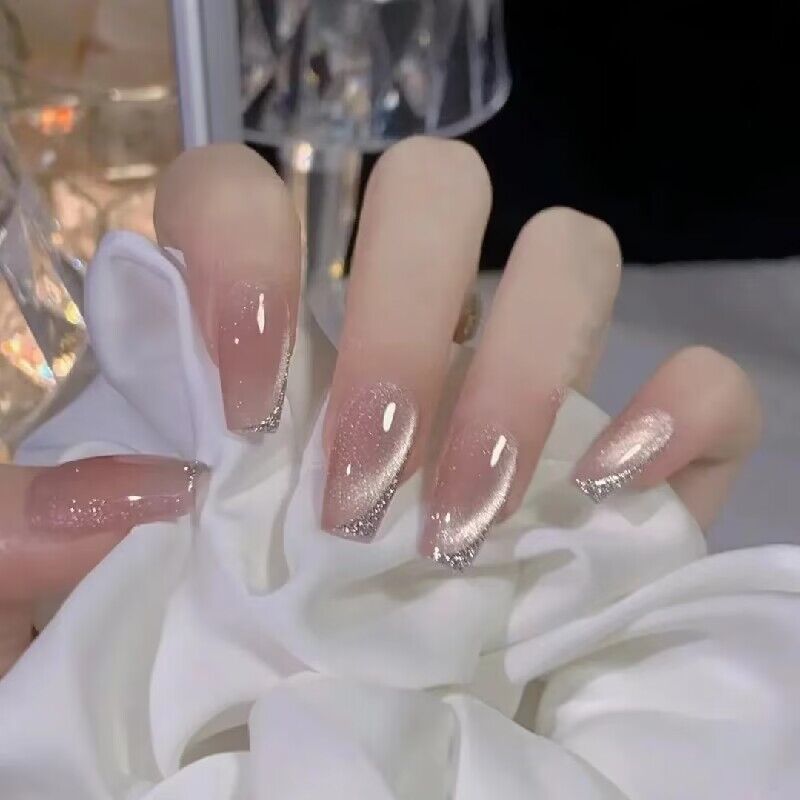 纯手工光疗穿戴甲温柔豆沙色猫眼穿戴甲批发成品重复使用美甲贴片