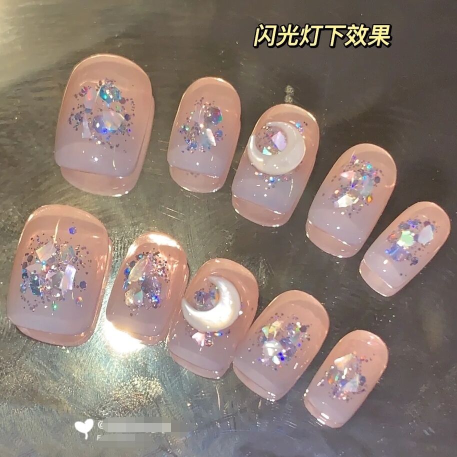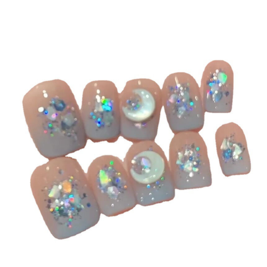 手工光疗穿戴甲 短方白月光穿戴甲批发成品重复使用美甲贴片