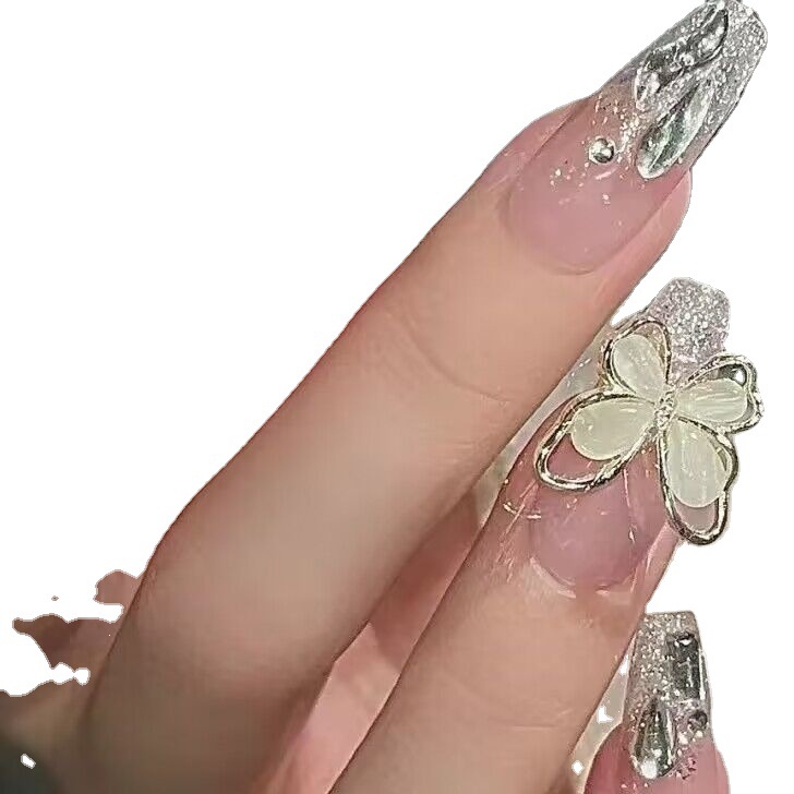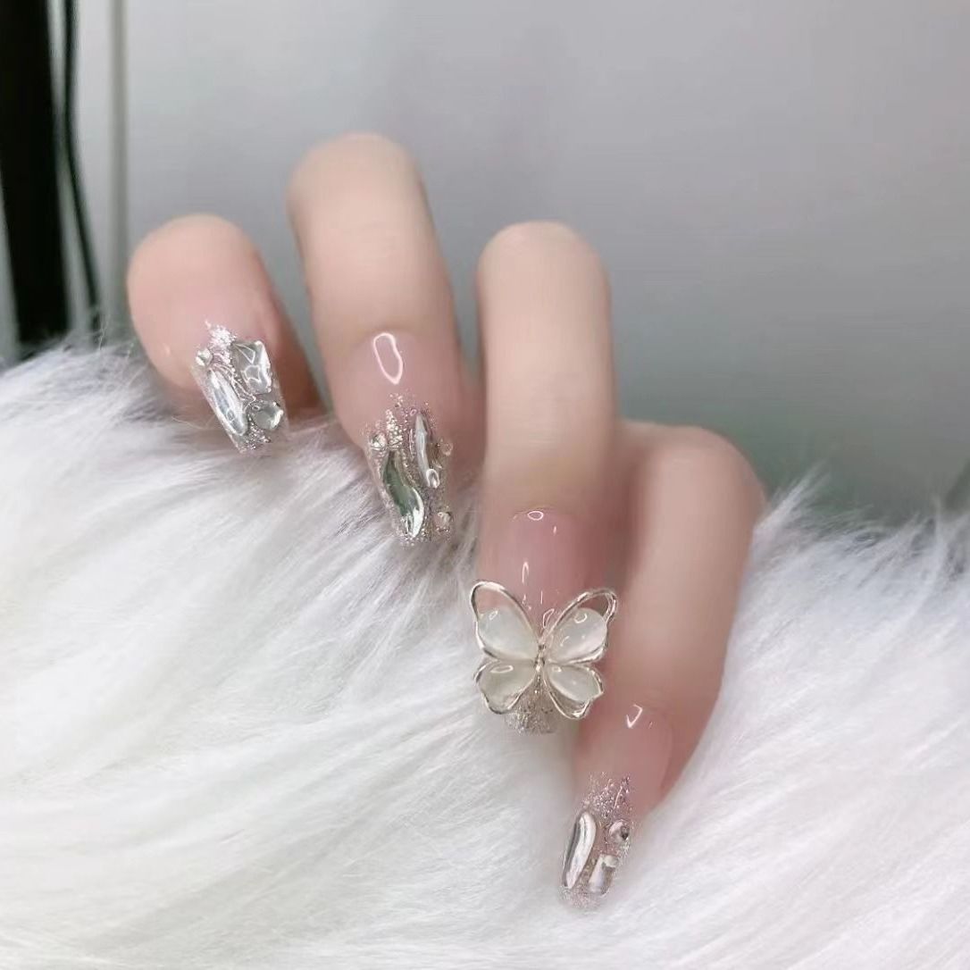纯手工光疗穿戴甲 璀璨猫眼蝴蝶穿戴甲批发成品重复使用美甲贴片