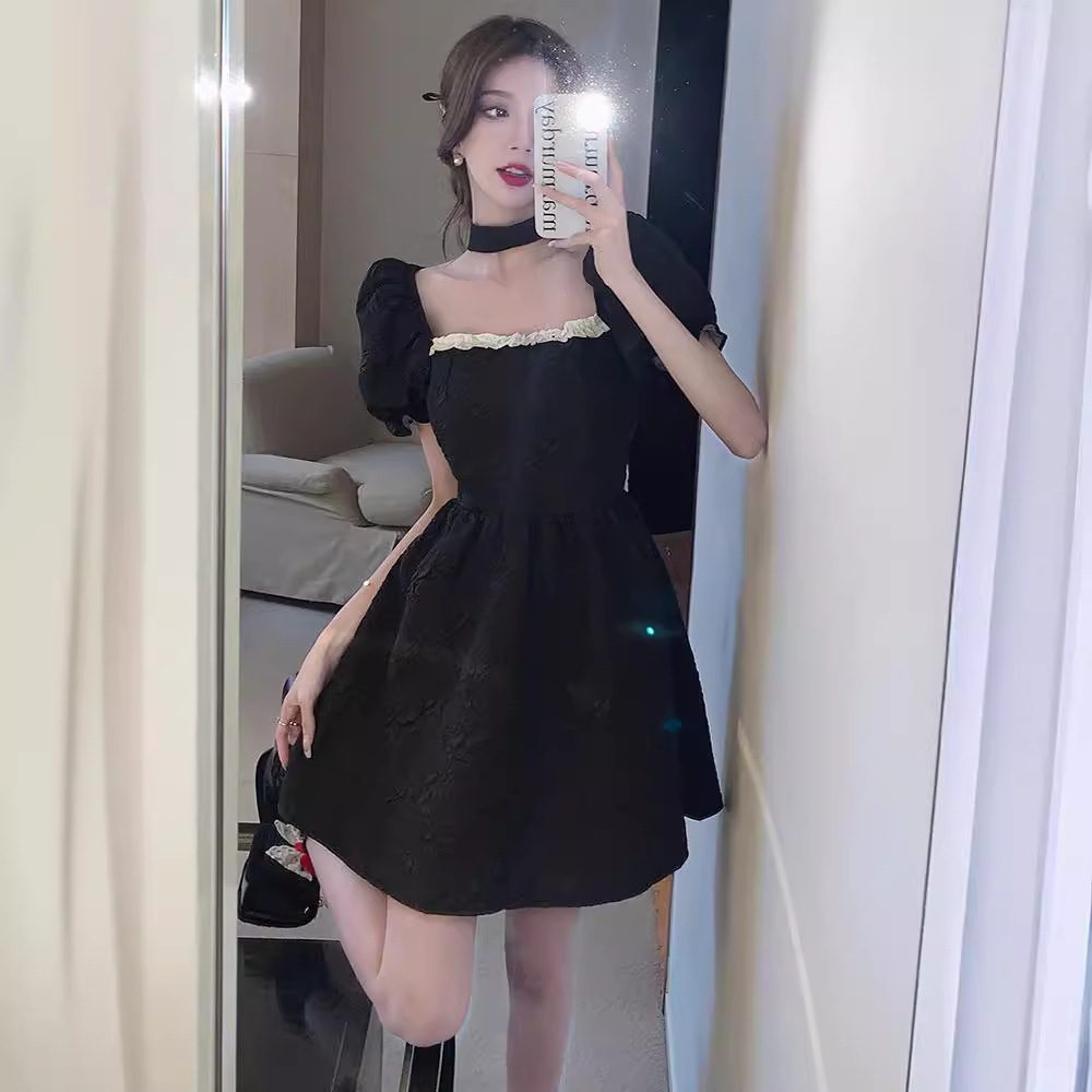 法式赫本风后背蝴蝶结连衣裙女夏季轻奢高级感气质名媛晚