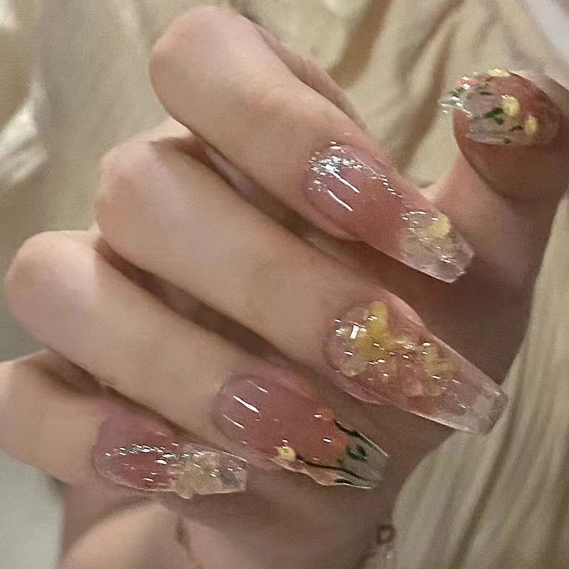 手工光疗穿戴甲 腮红郁金香穿戴甲批发成品重复使用美甲贴片