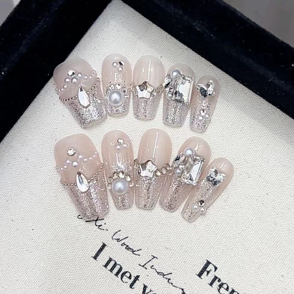 纯手工光疗穿戴甲柔珠小姐果批发成品重复使用美甲贴片可拆卸猫