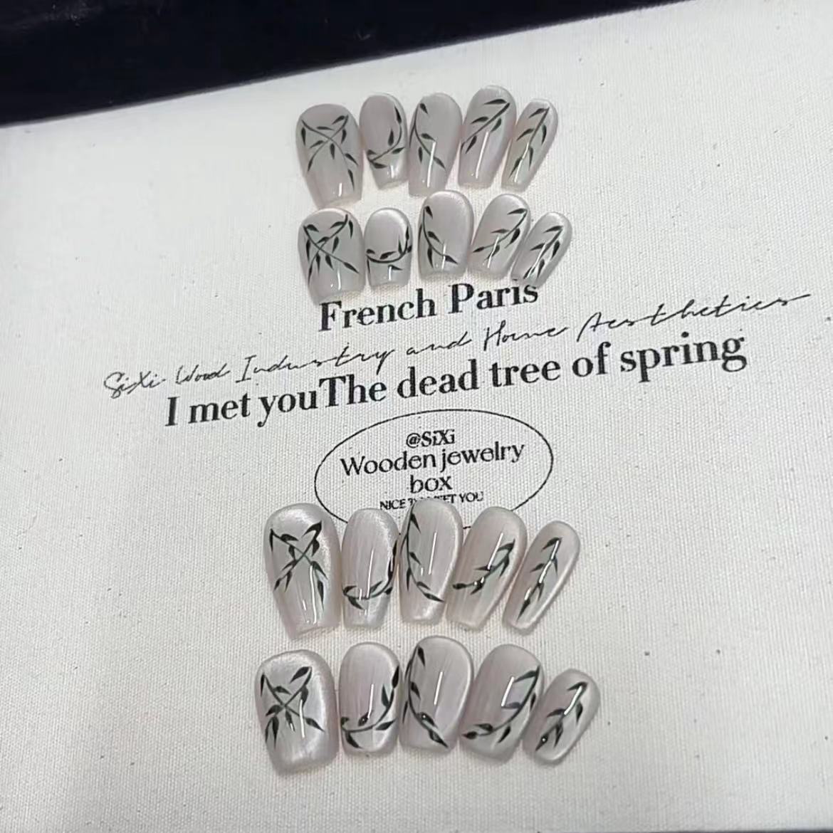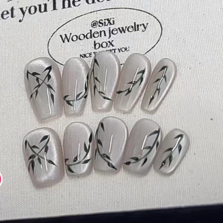 纯手工光疗穿戴甲竹林风批发成品重复使用美甲贴片可拆卸