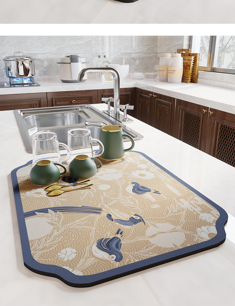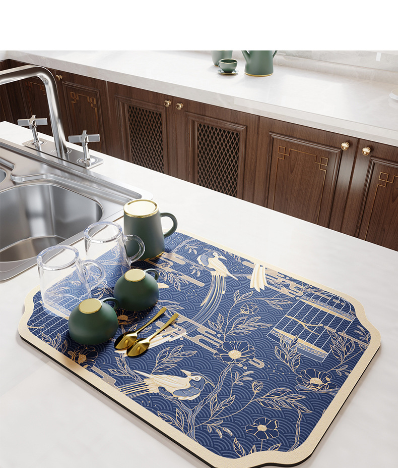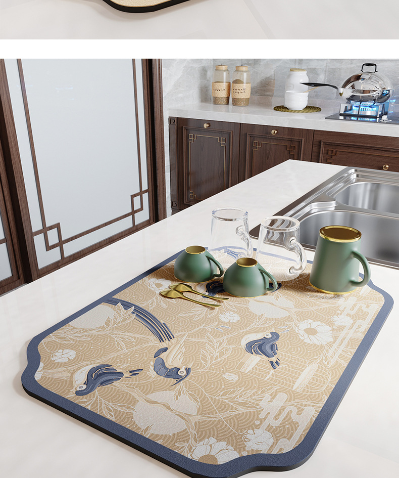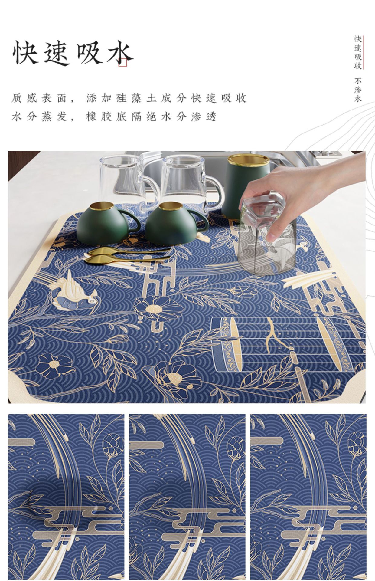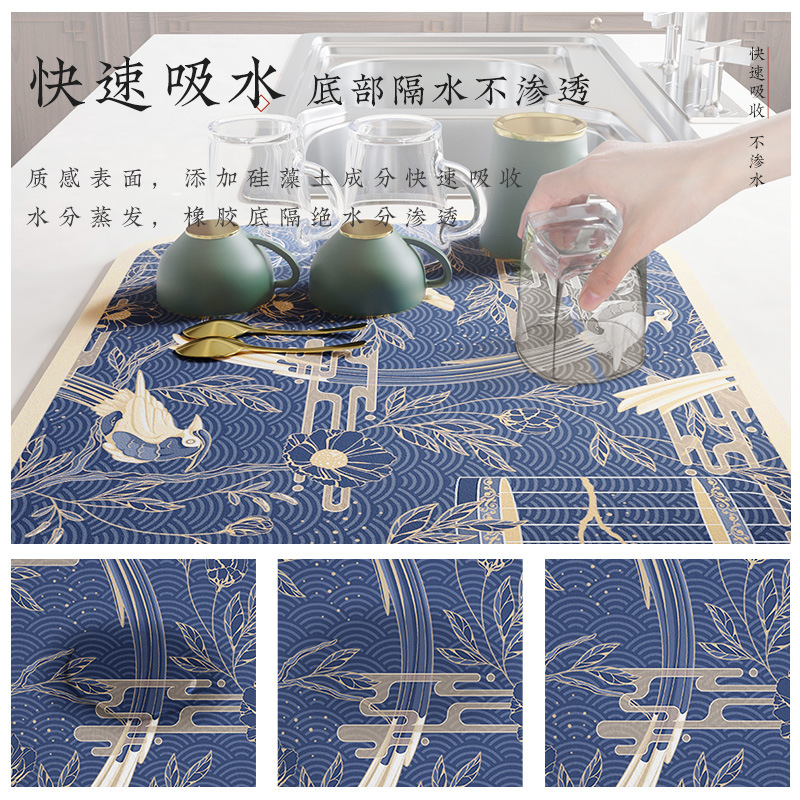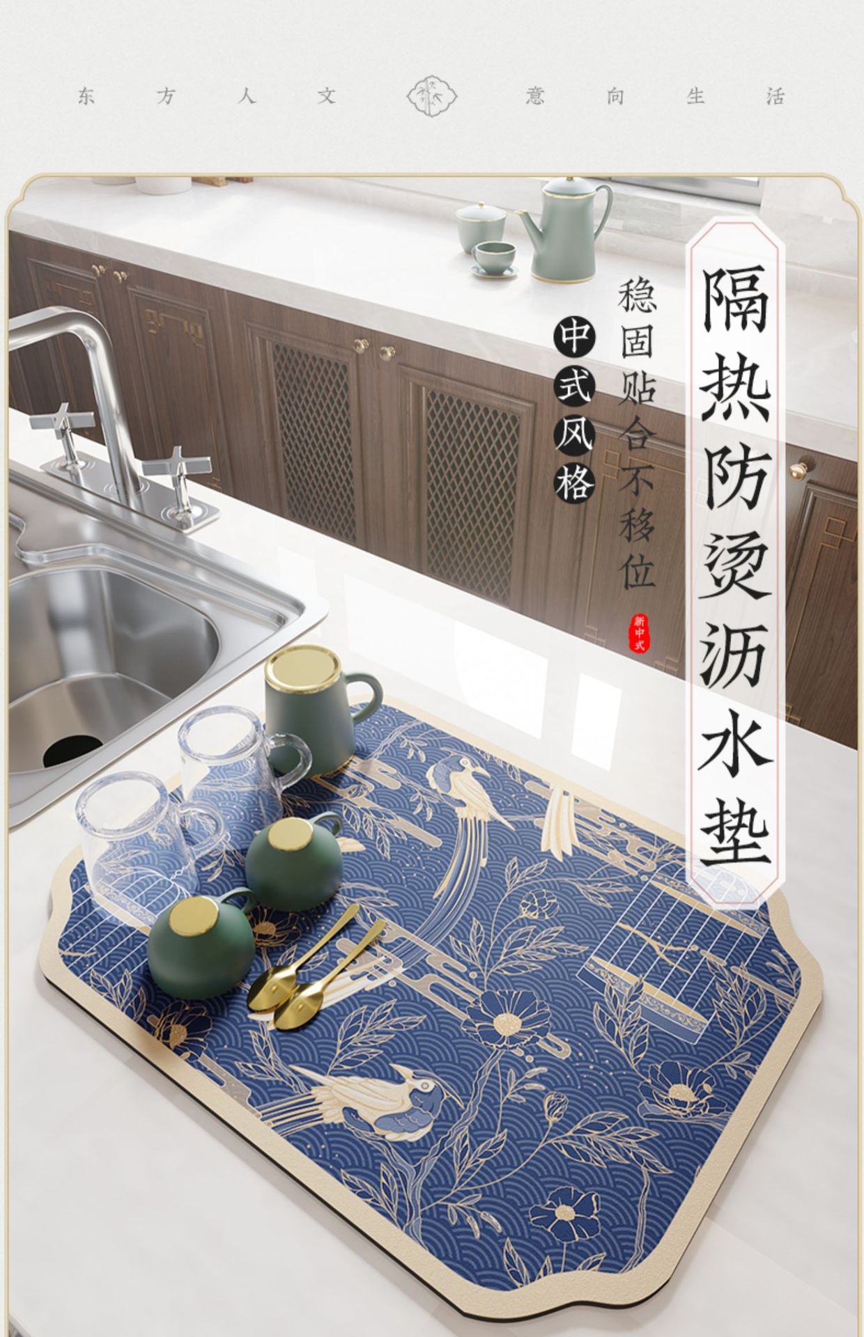 新中式厨房台面沥水垫硅藻泥吸水垫桌面餐具干燥垫杯垫餐桌垫