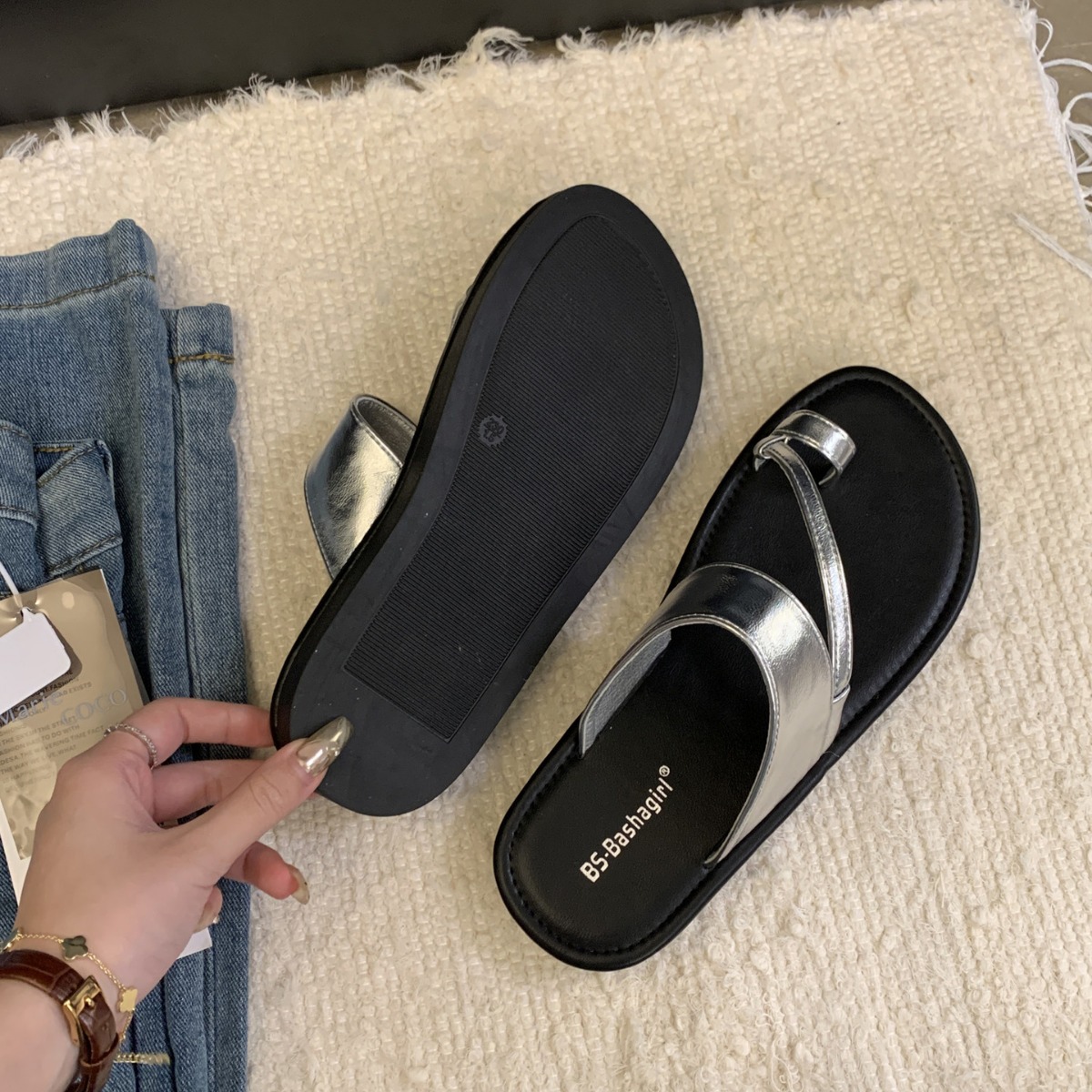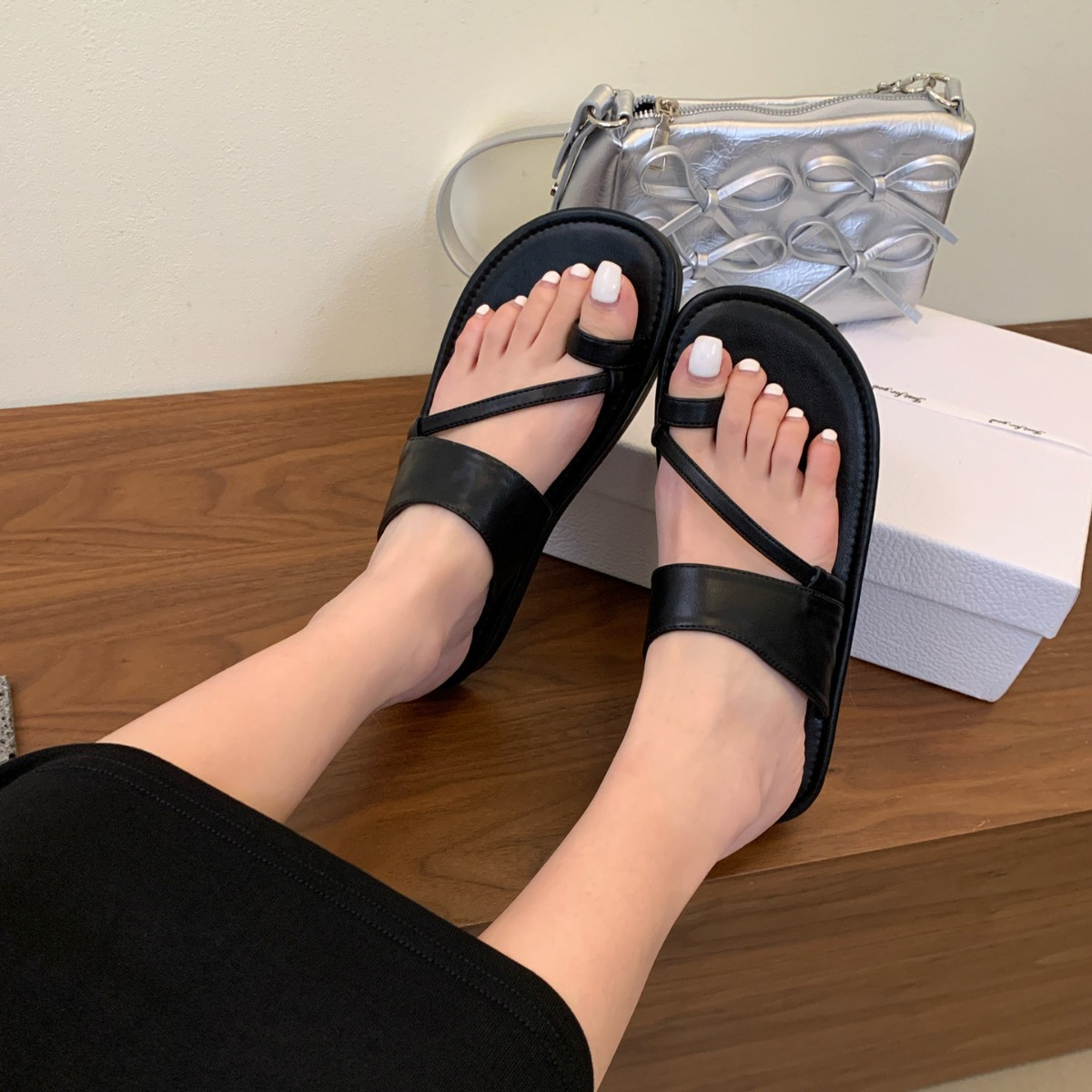 平底时尚套趾拖鞋女外穿夏季新款小众设计感圆头镂空露趾凉拖