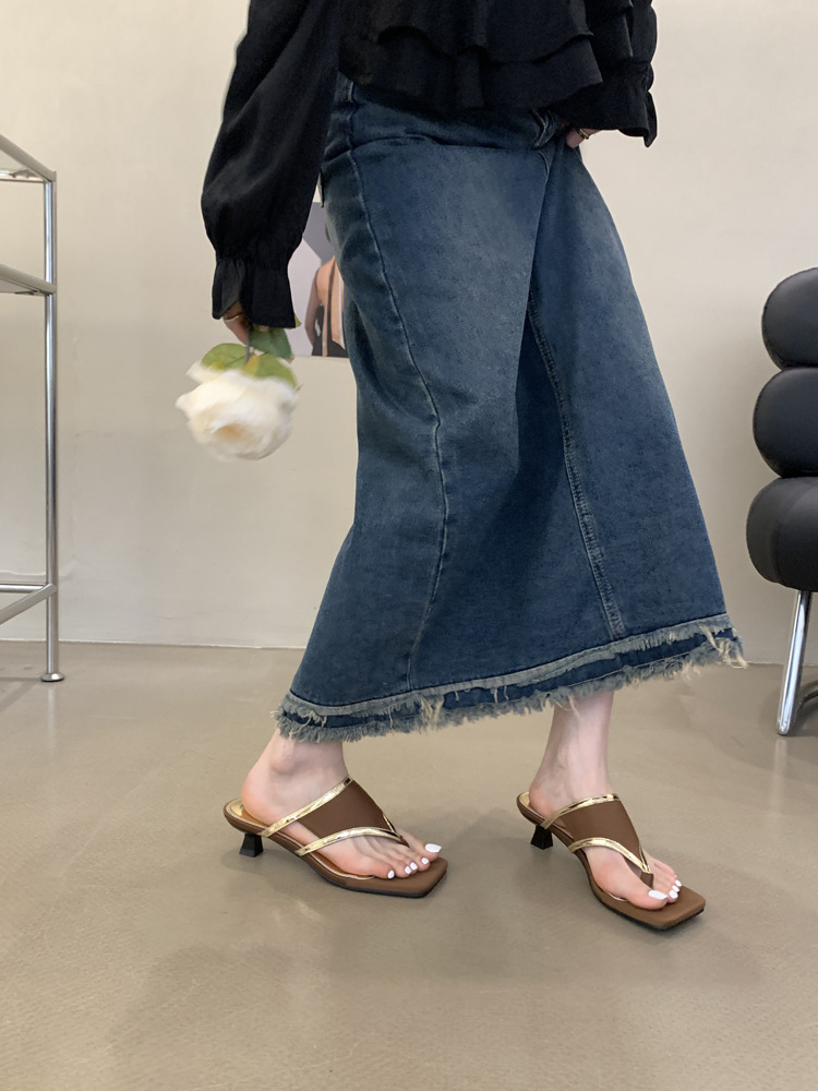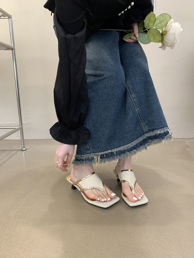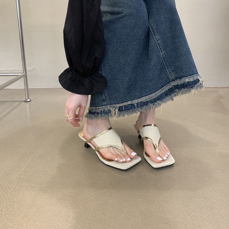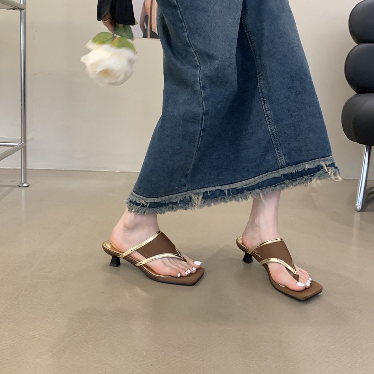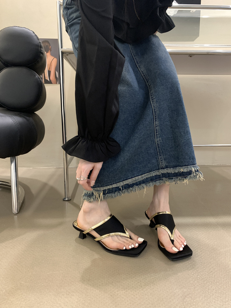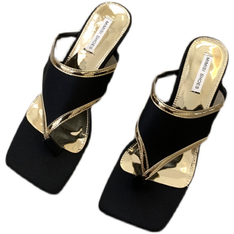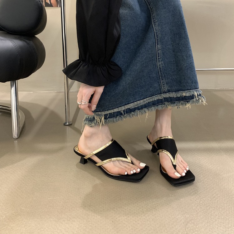 时尚百搭方头夹脚高跟人字拖鞋女外穿年夏季新款黑色细跟凉鞋