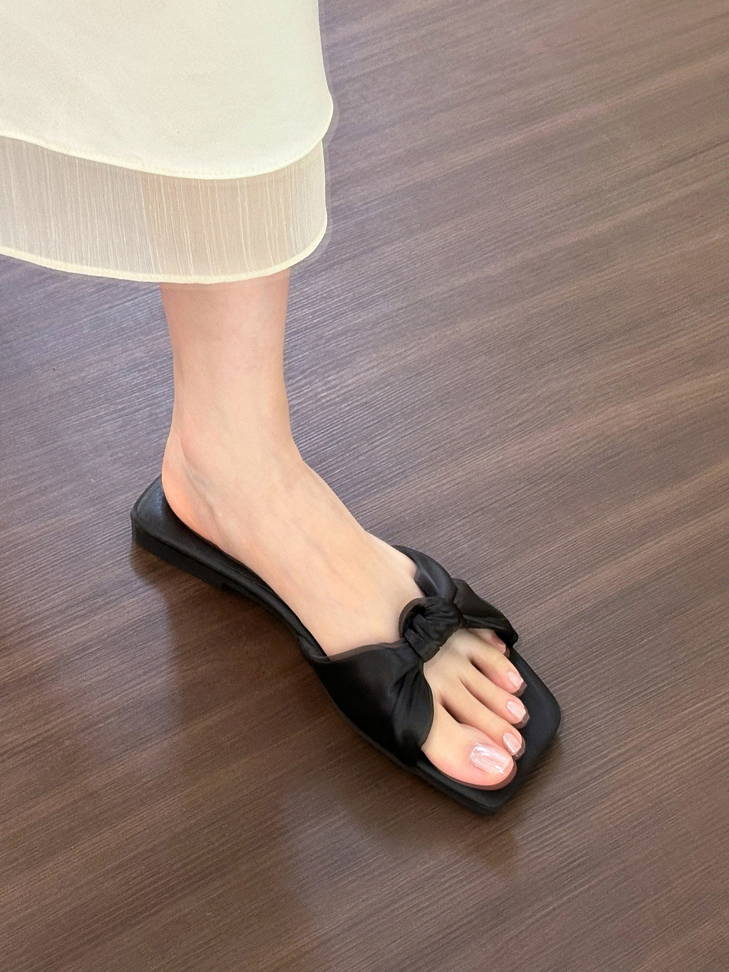 软到爆!法式蝴蝶结平底拖鞋女夏季外穿一字拖鞋