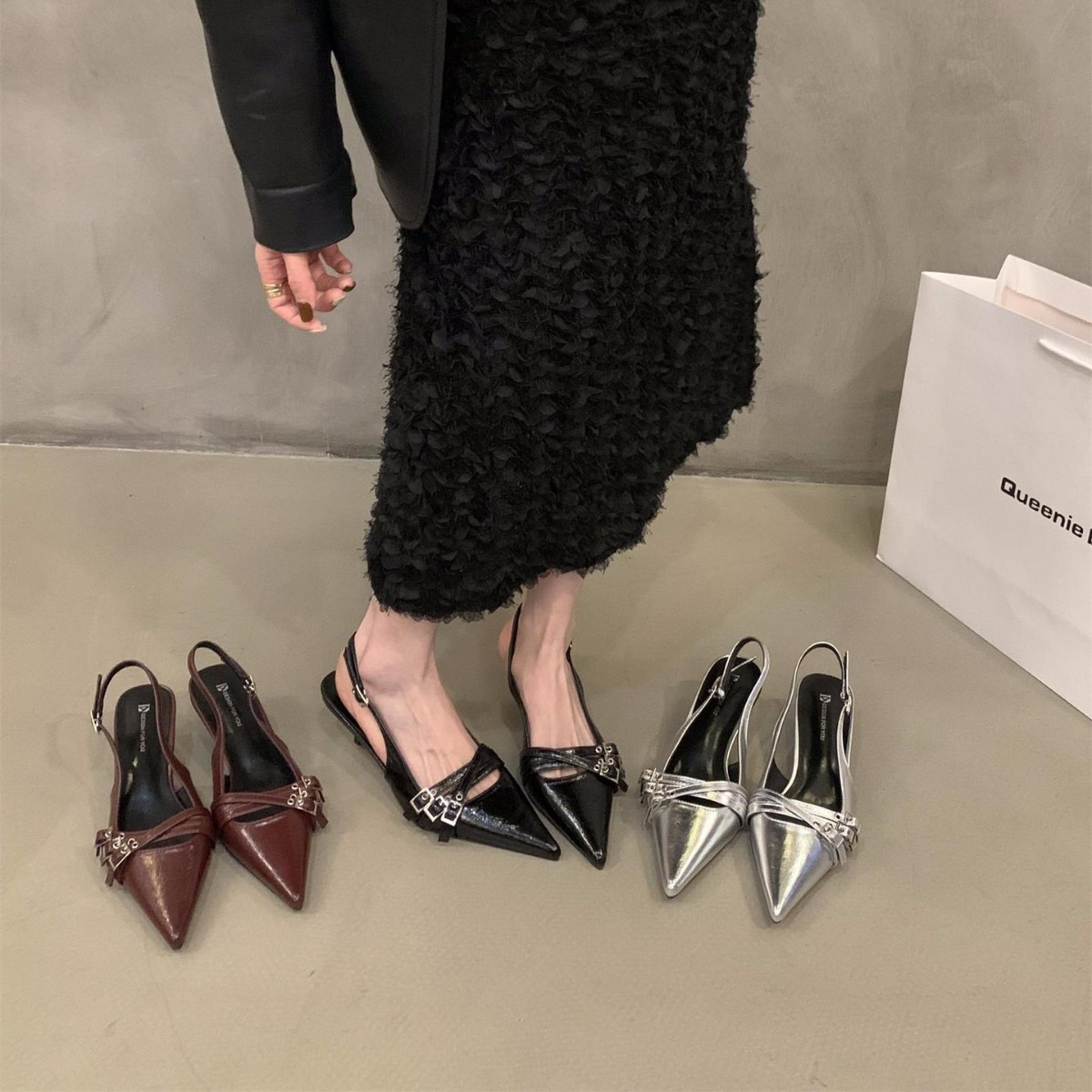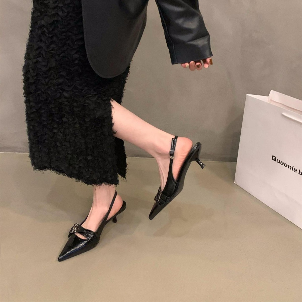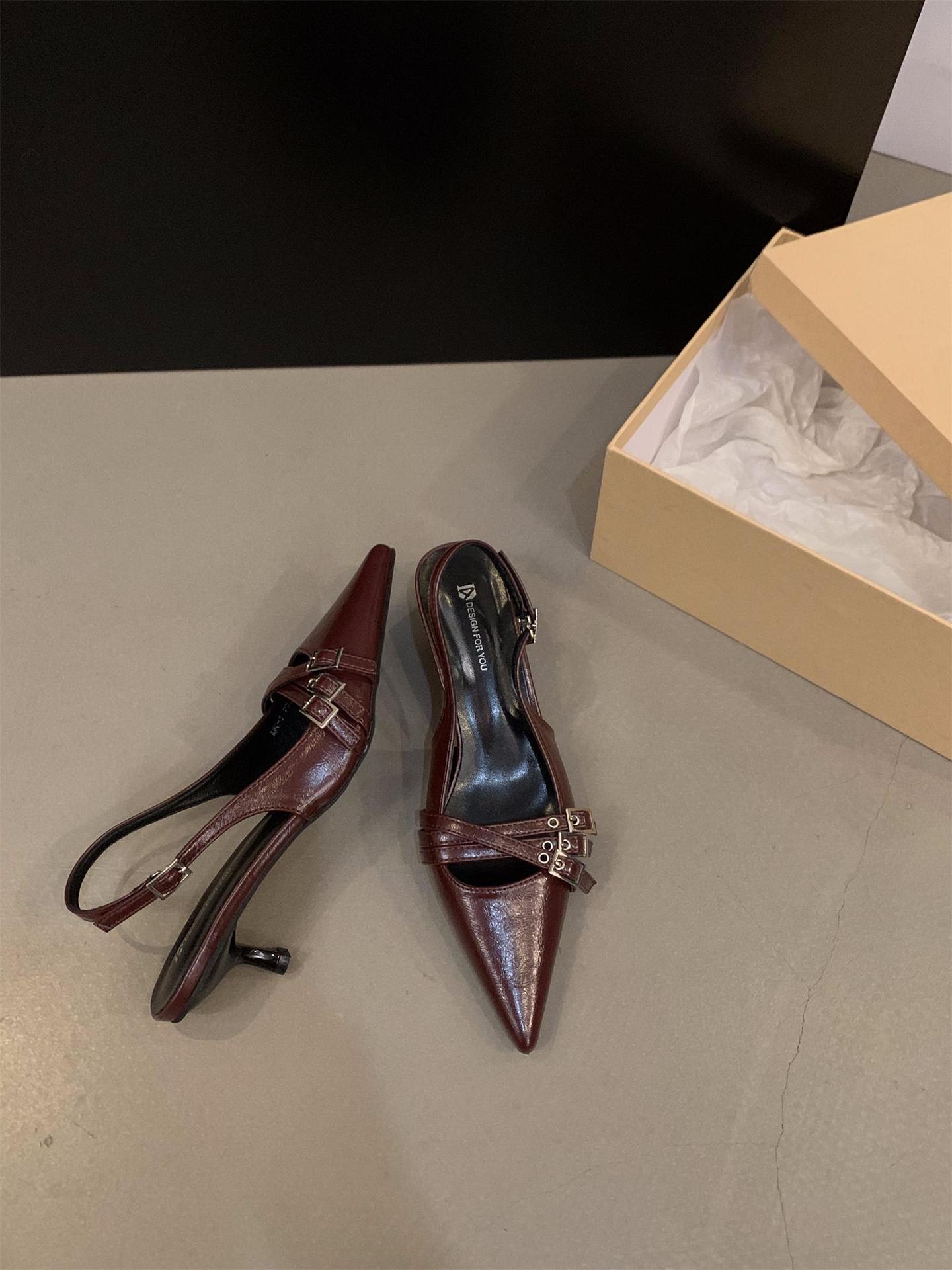 小众高跟鞋红色包头凉鞋仙女鞋子新款春夏季黑色法式尖头单鞋