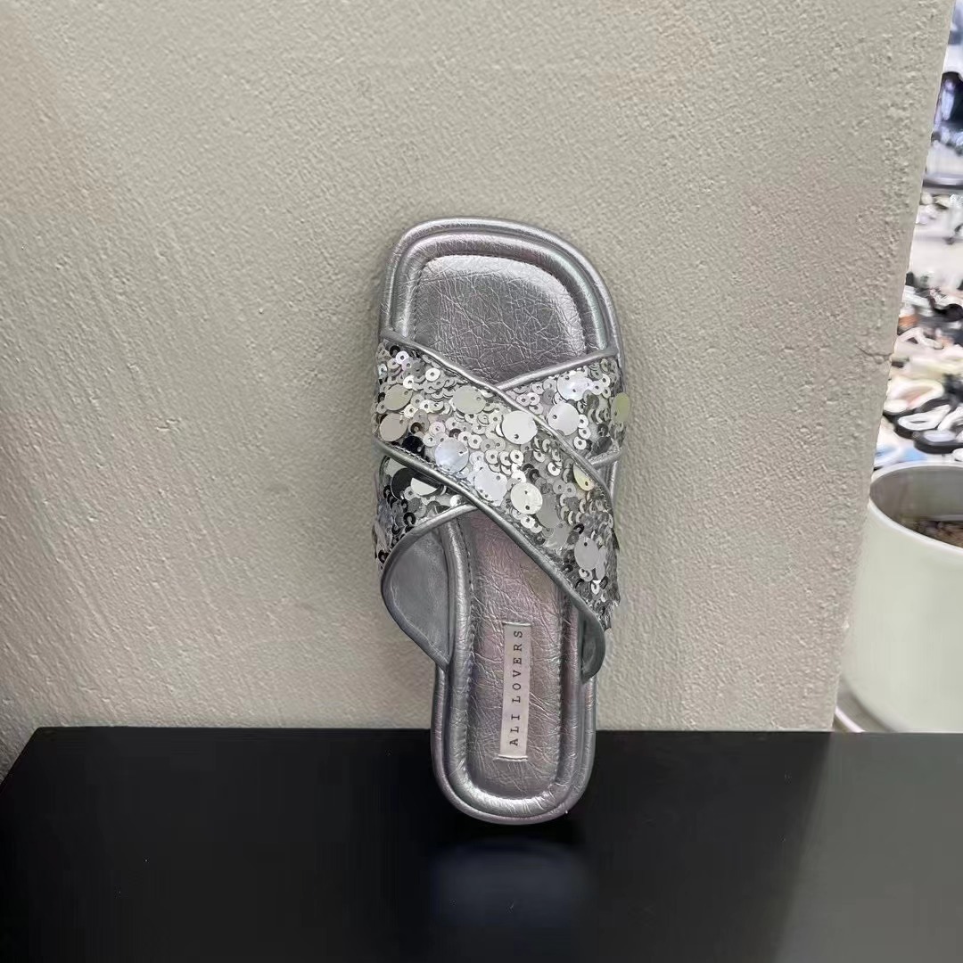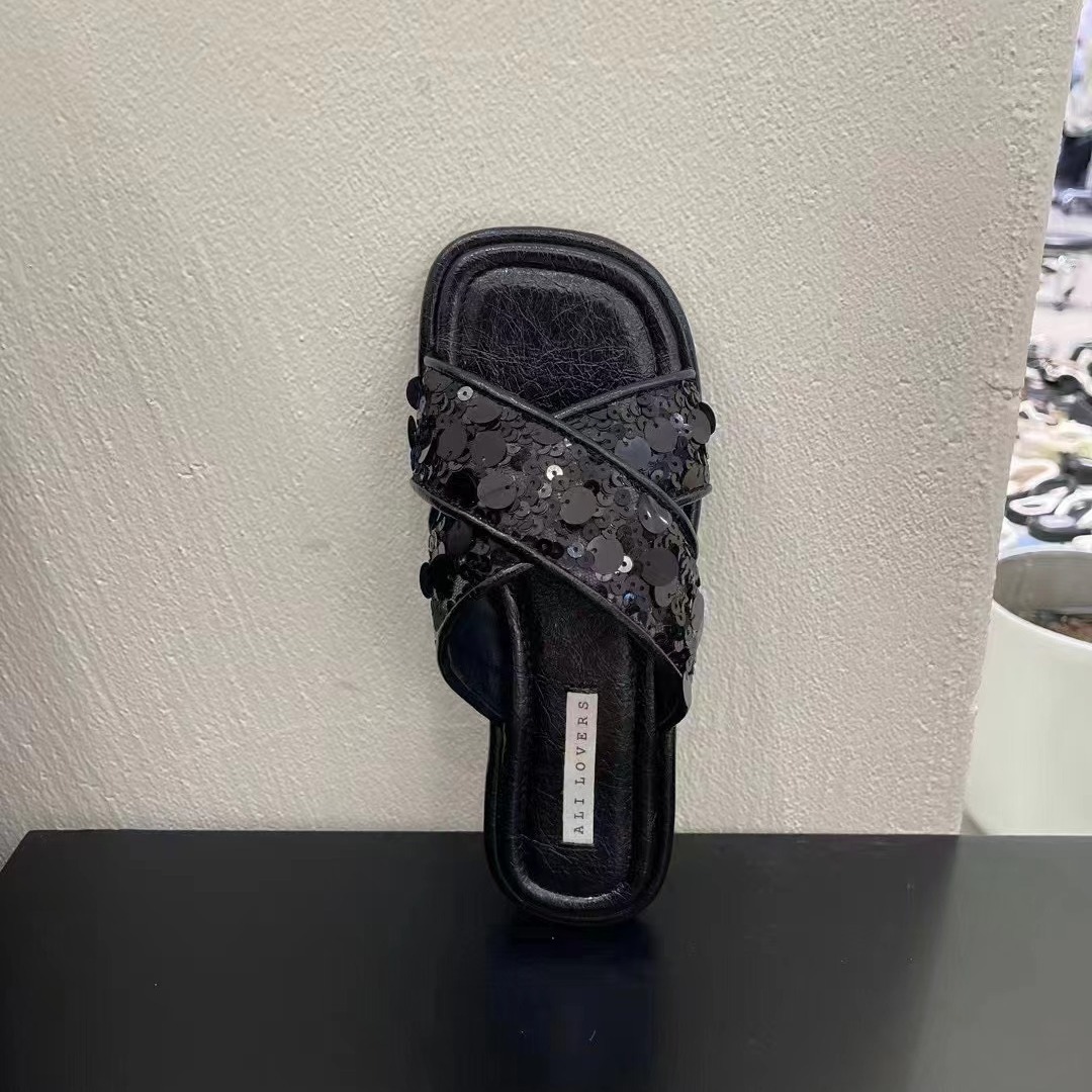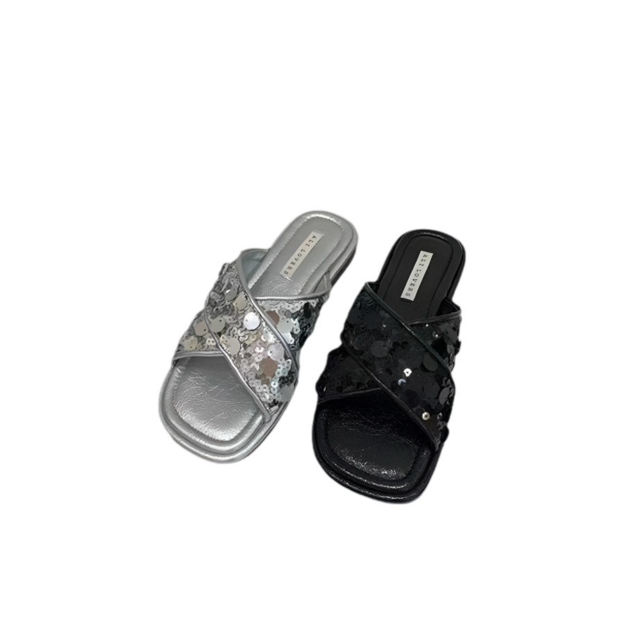 亮片交叉带拖鞋新款外穿平底孕妇鞋休闲度假沙滩凉拖鞋女夏季