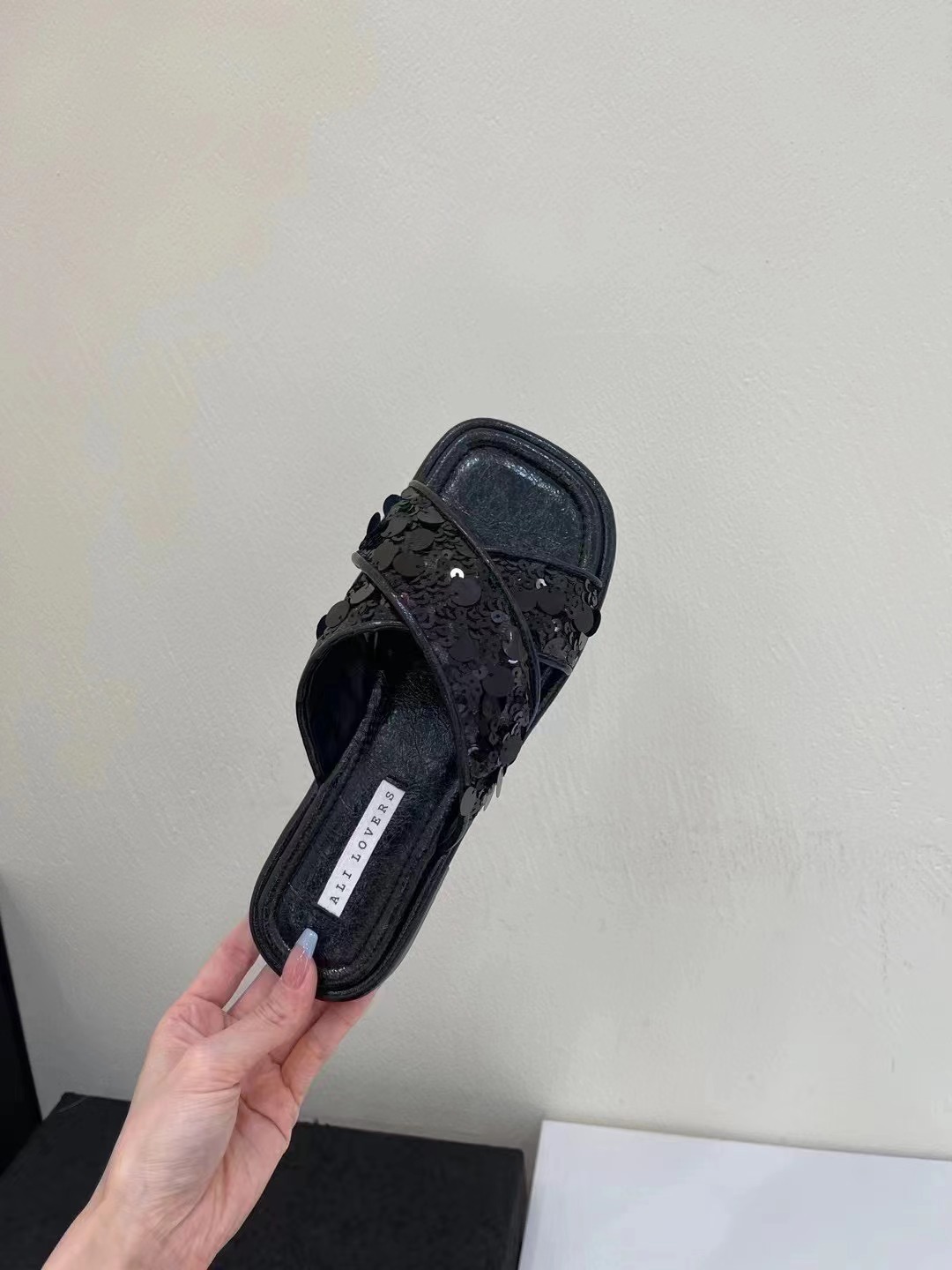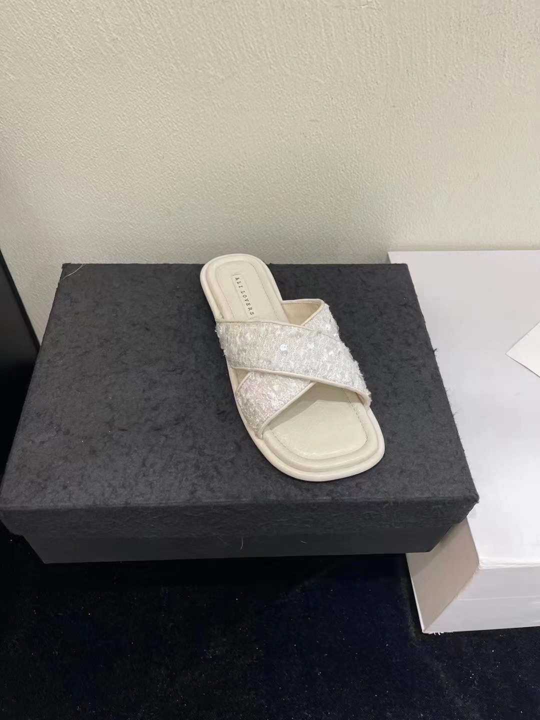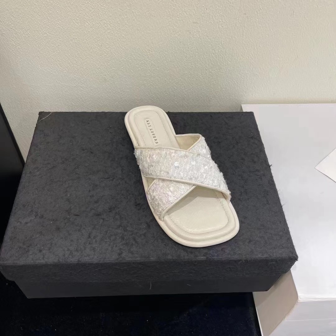 亮片交叉带拖鞋新款外穿平底孕妇鞋休闲度假沙滩凉拖鞋女夏季