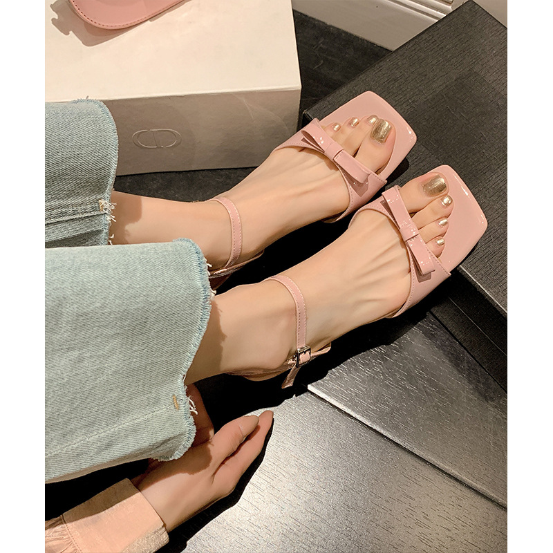 法式一字带凉鞋女夏季年新款蝴蝶结配裙子露趾细跟高跟鞋