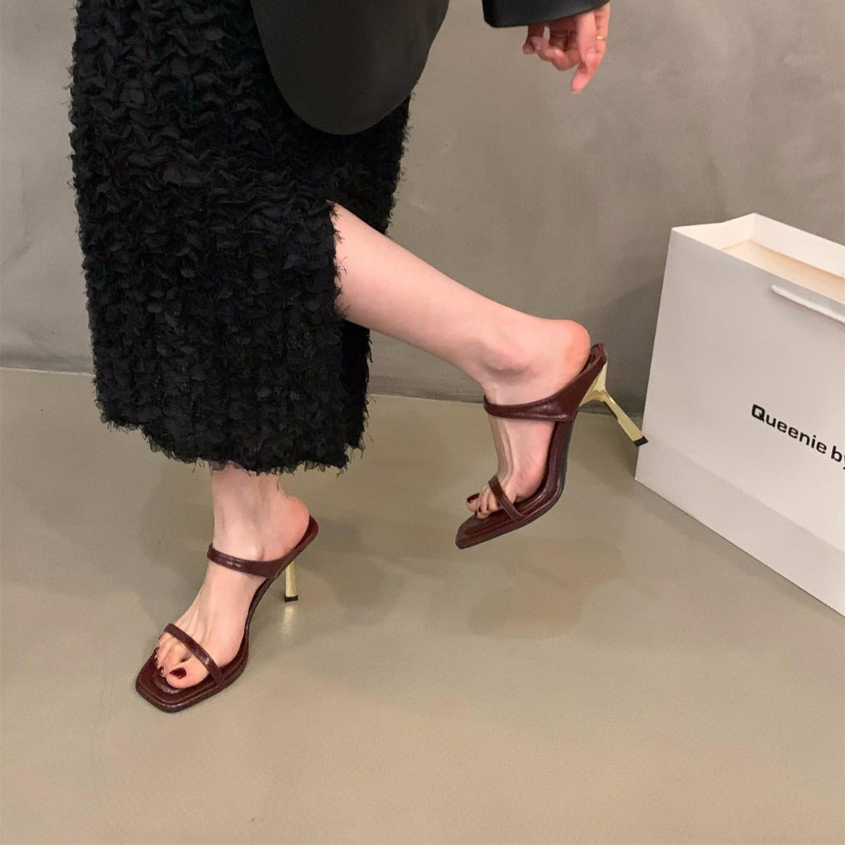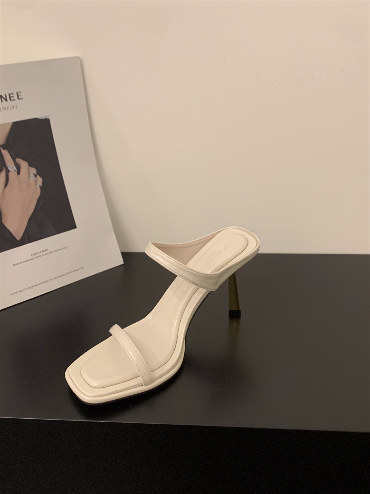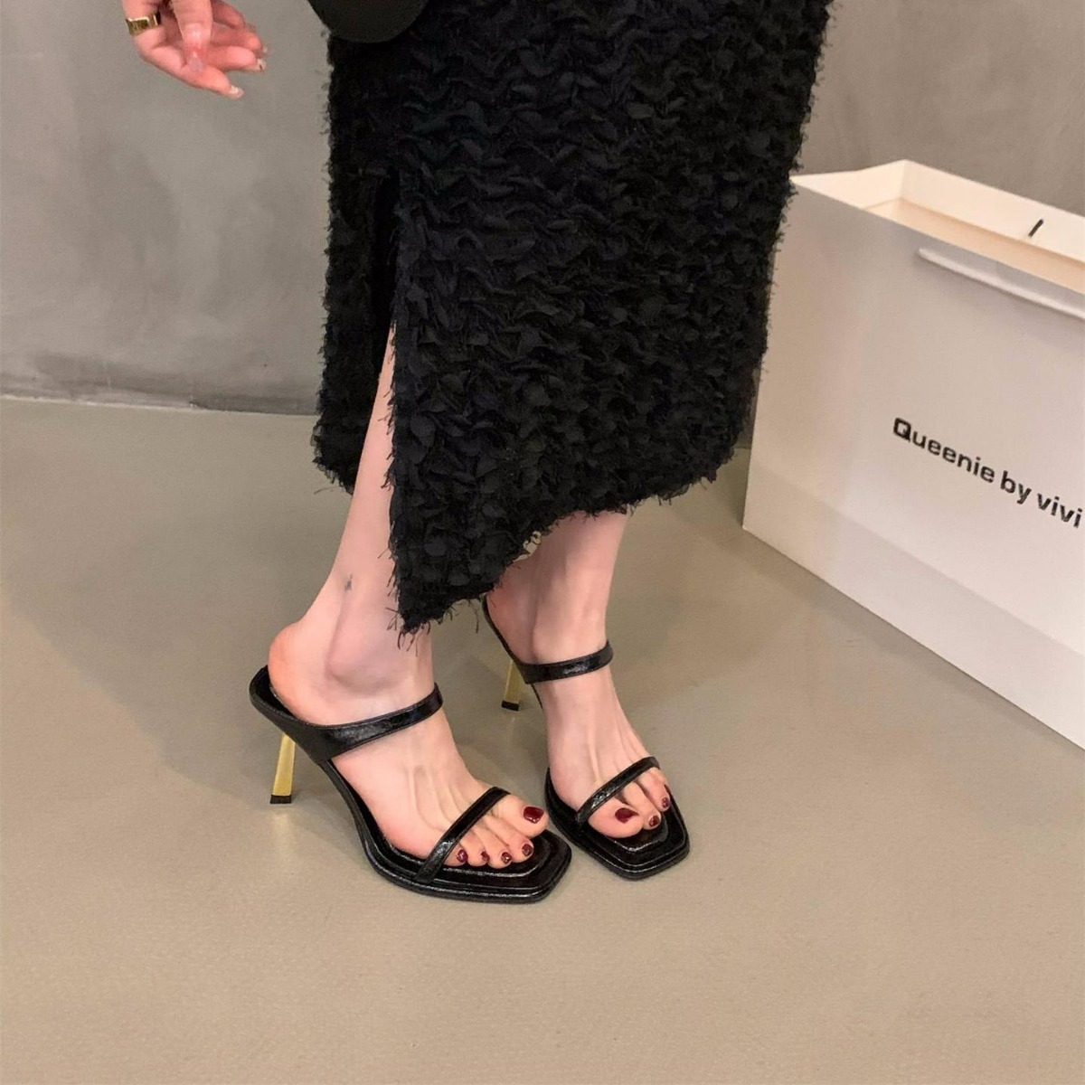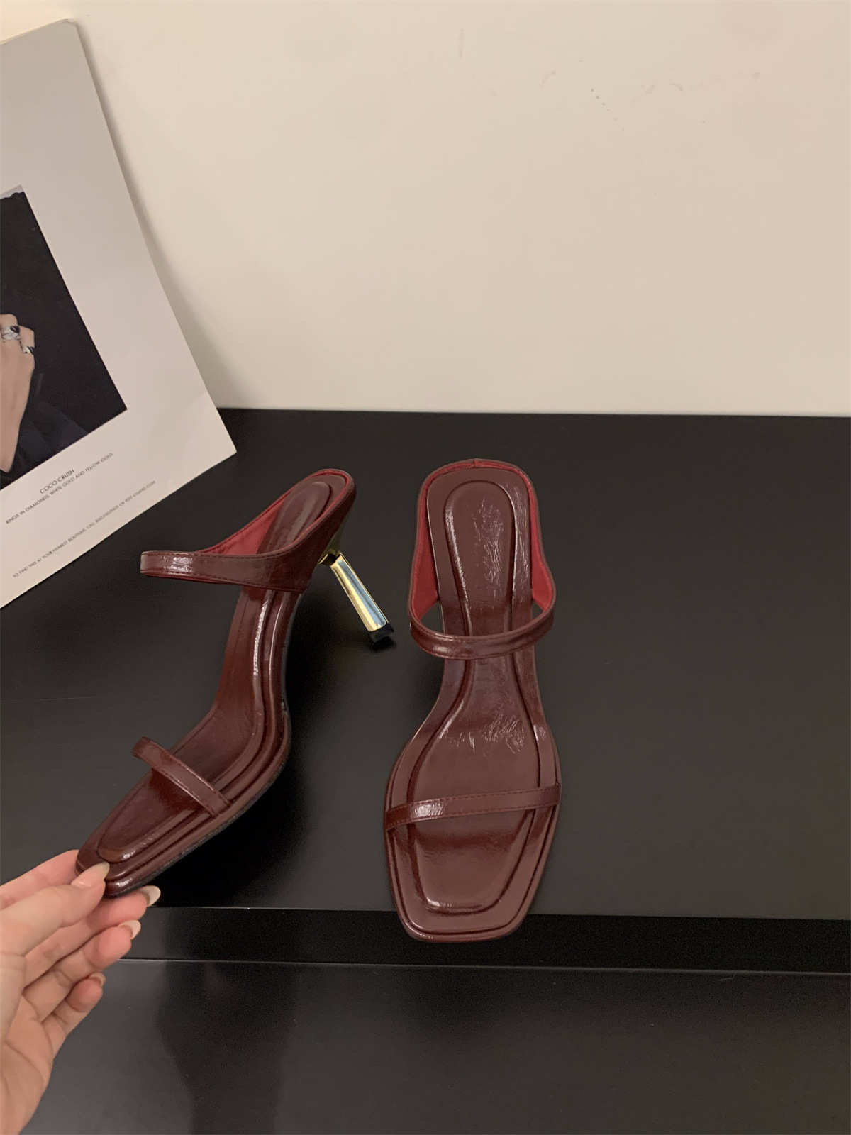 小众法式豹纹高跟鞋一字拖鞋女鞋子外穿新款夏季细跟凉拖凉鞋