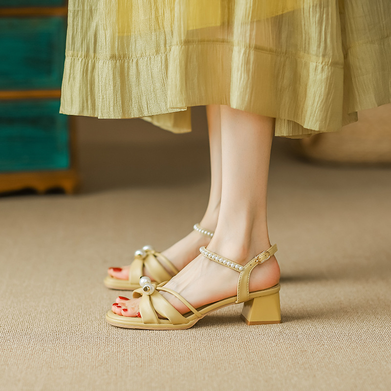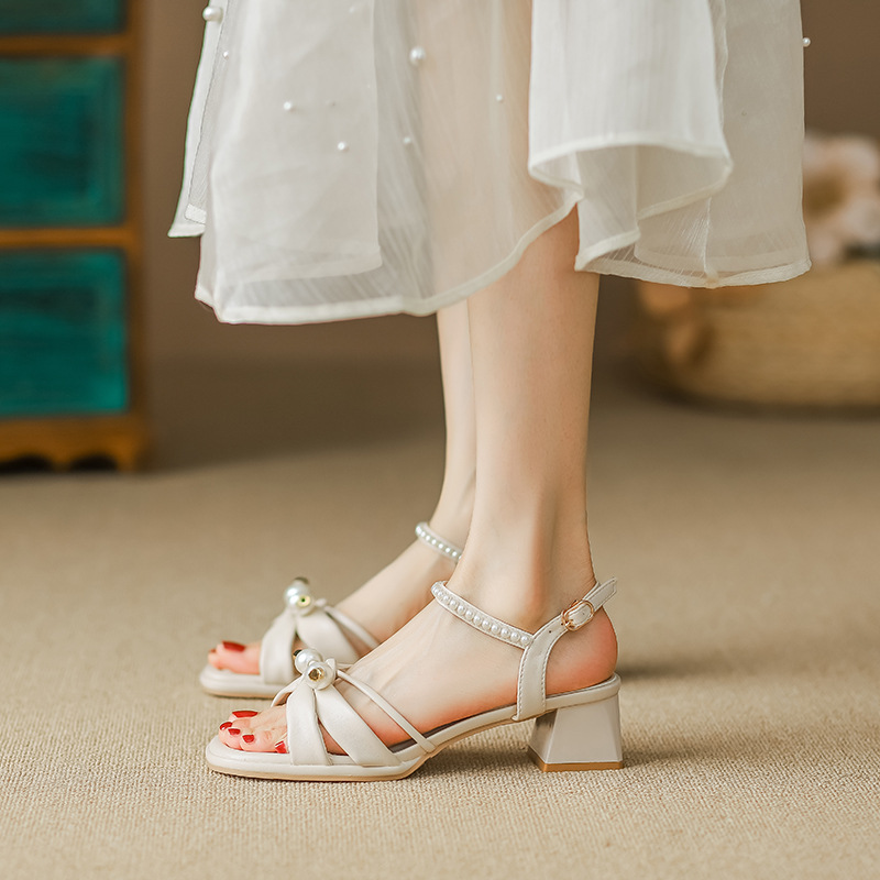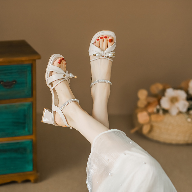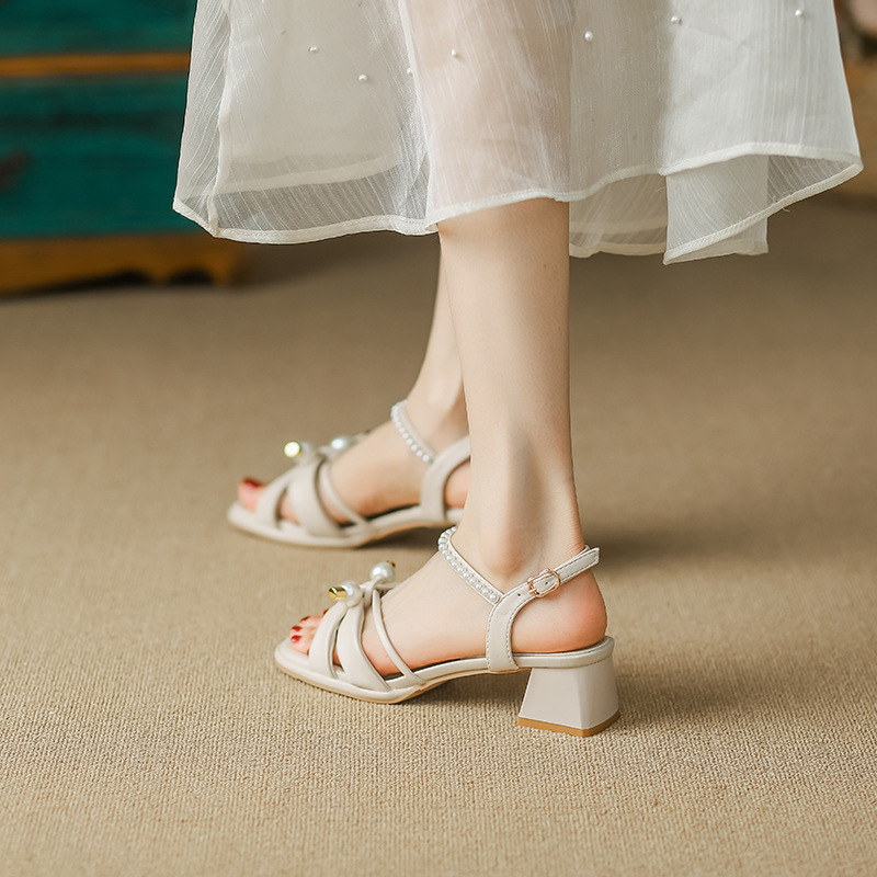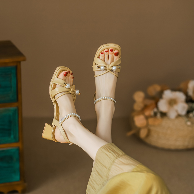 凉鞋女新款夏季超火时尚粗跟时装高级感仙女风高跟罗马配裙鞋