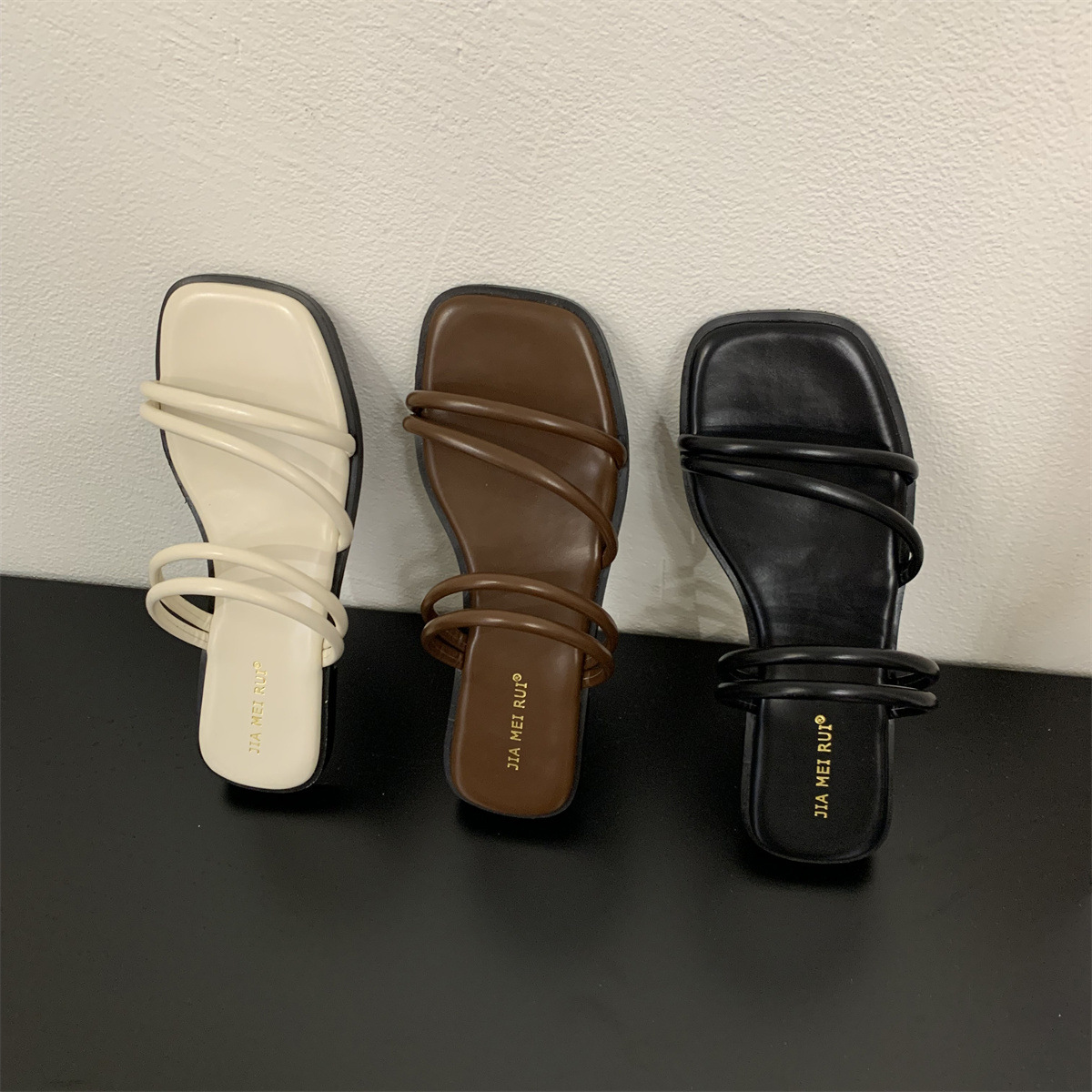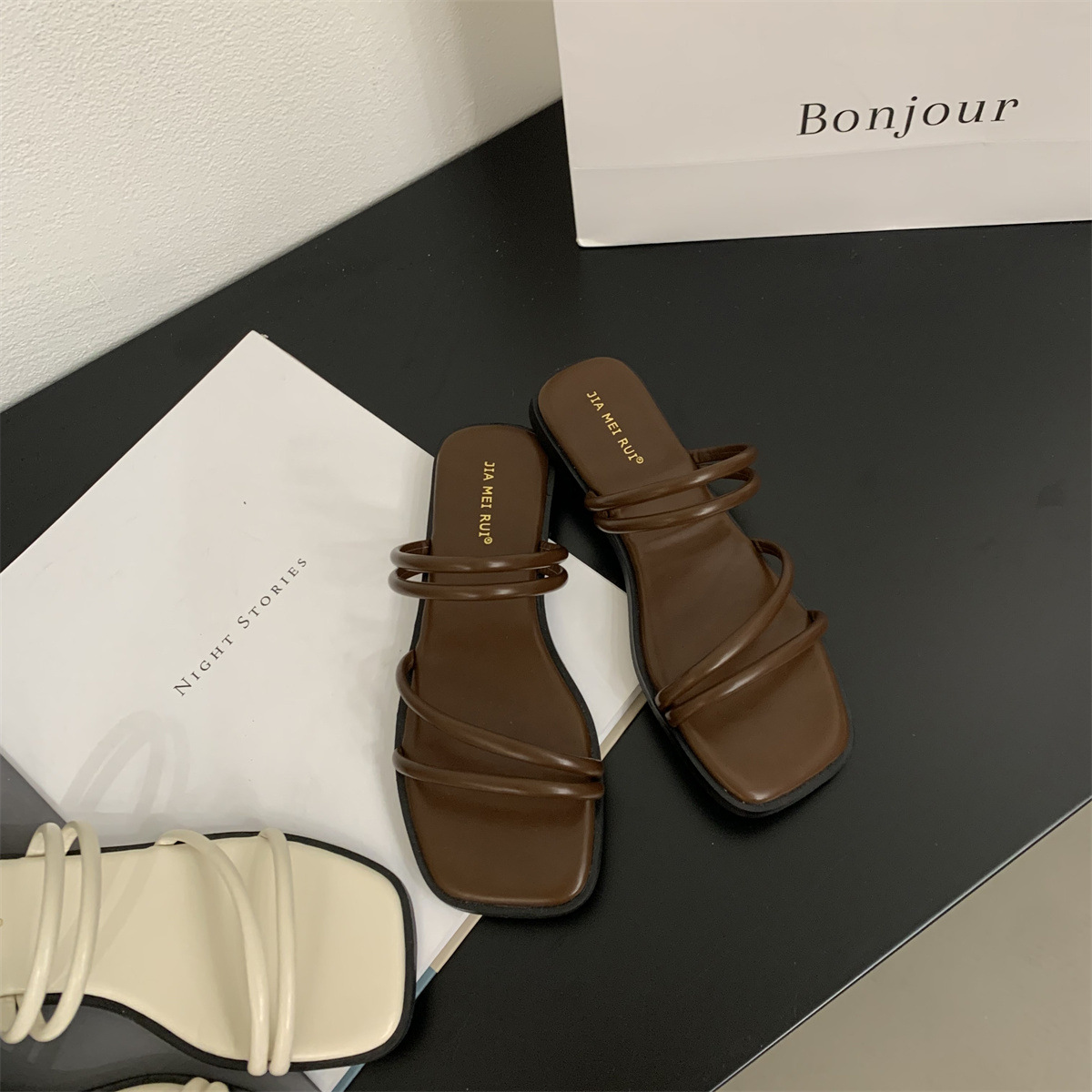 法式晚风一字拖鞋女夏季外穿年新款韩版仙女复古细带平底凉鞋