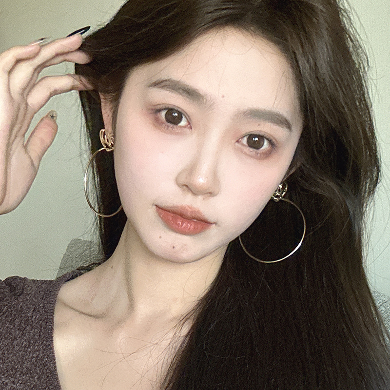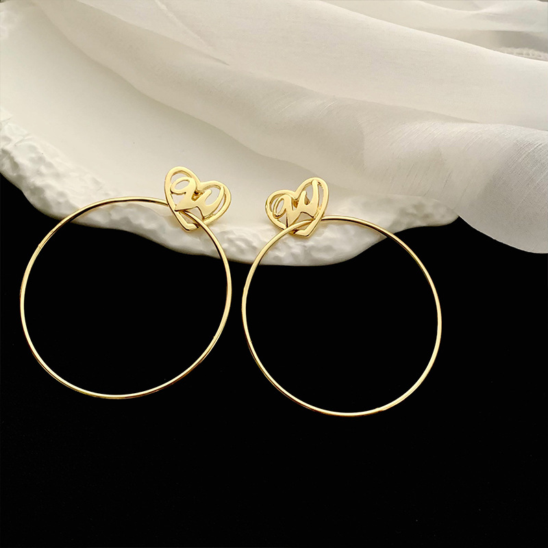 简约设计感金色爱心圆圈耳环小众设计感高级感复古大耳圈耳饰