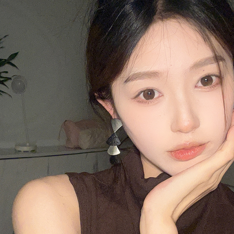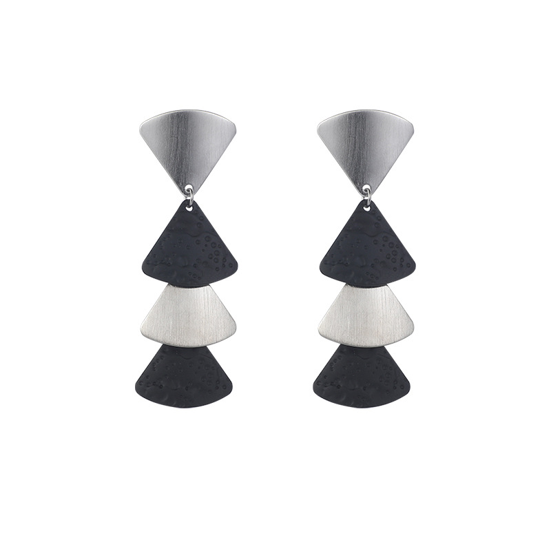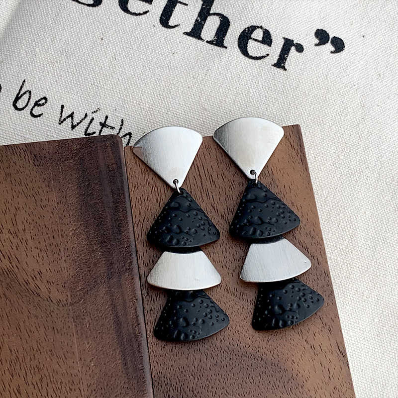 独特个性银黑撞色三角流苏耳环轻奢高级感简约大气几何耳坠耳饰女