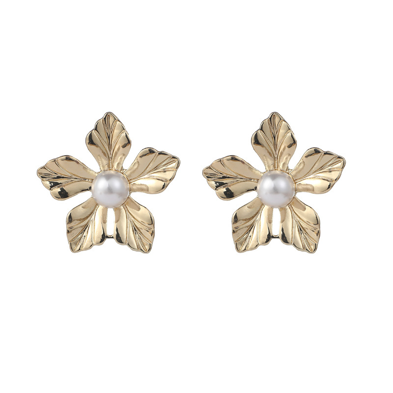 简约气质金属花朵珍珠耳钉小众高级感百搭耳环年新款网红耳饰