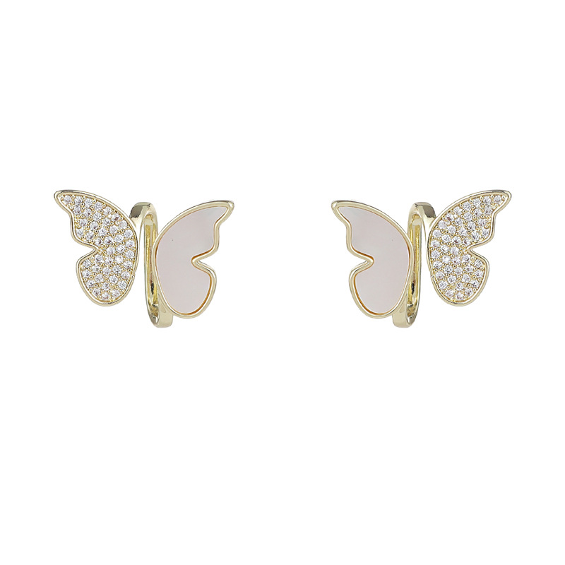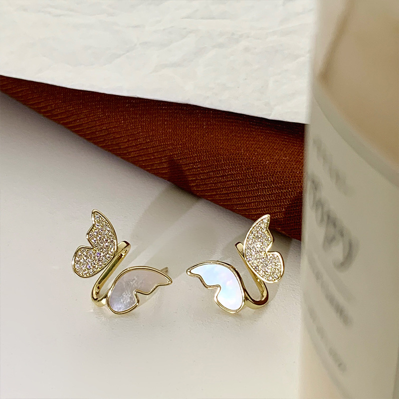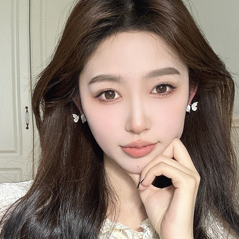 精致闪钻贝壳蝴蝶耳环女 ins轻奢小众设计高级感耳钉气质百搭耳饰