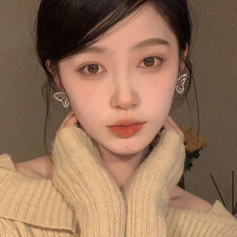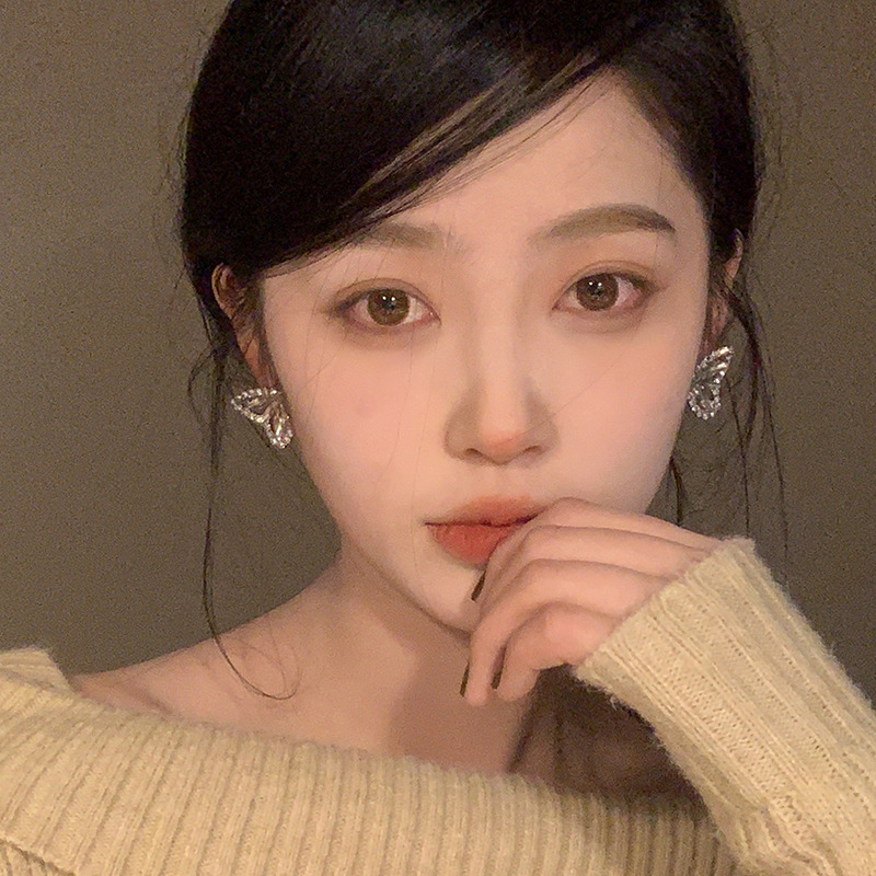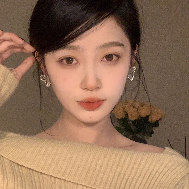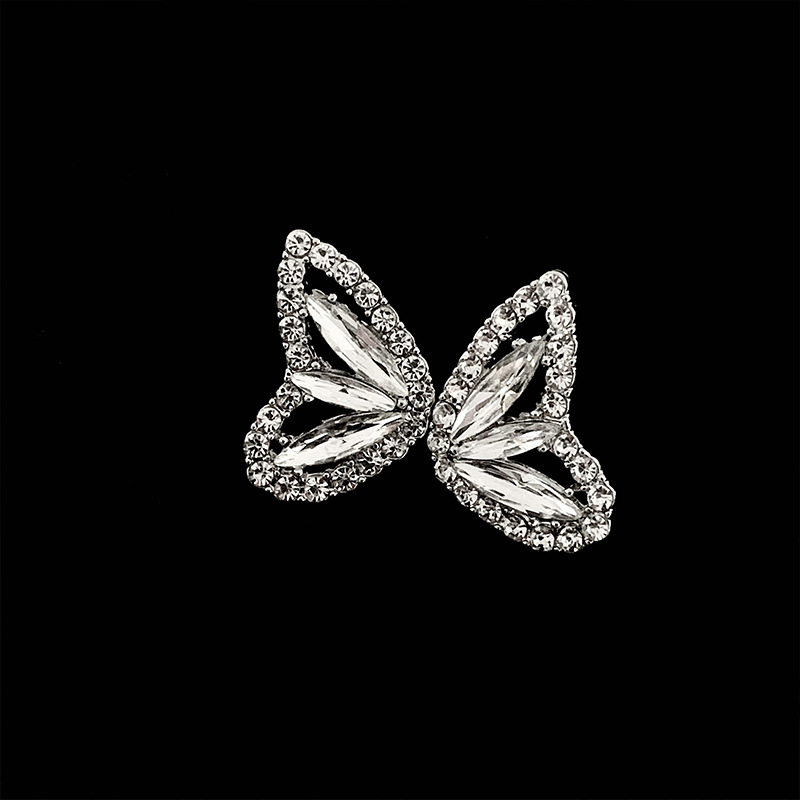 气质满钻镂空蝴蝶翅膀耳环小众设计感高级感轻奢耳钉简约百搭耳饰