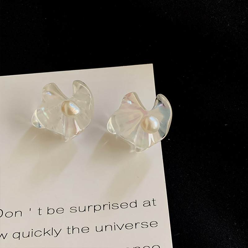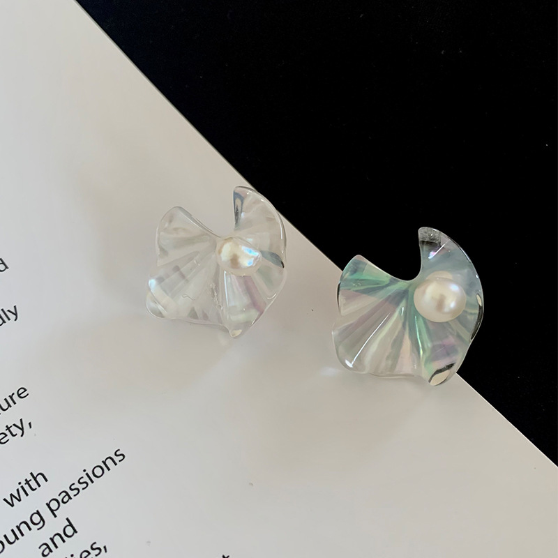 夏天清新幻彩贝壳异形珍珠耳环 ins气质百搭高级感耳饰人鱼姬耳钉