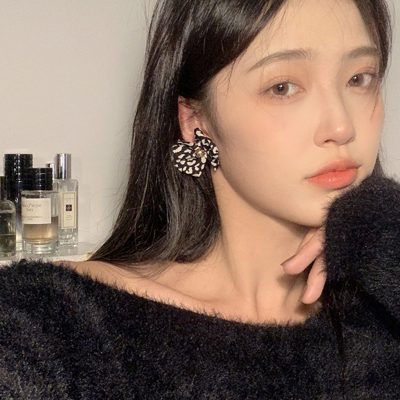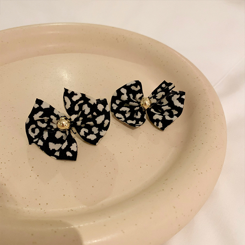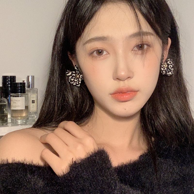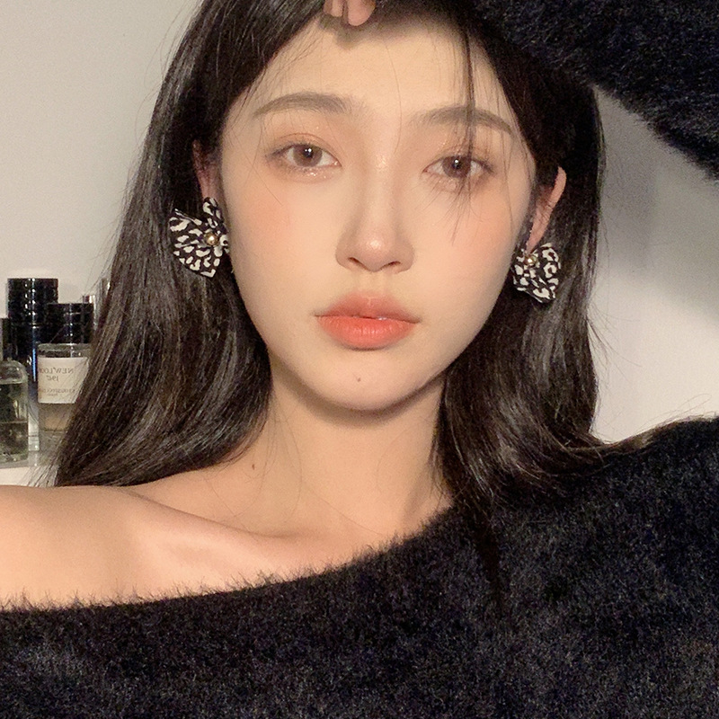 法式复古波点少女小香风耳环黑白豹纹蝴蝶结耳钉气质高级感耳饰品