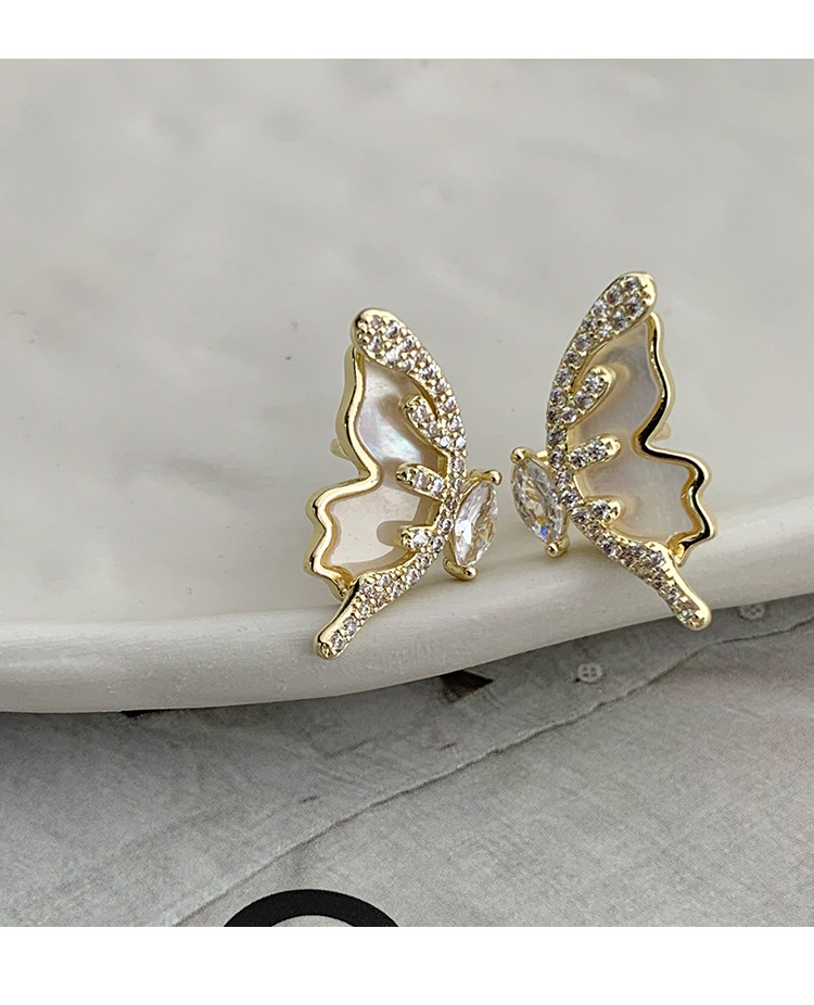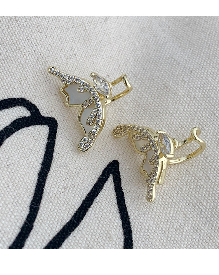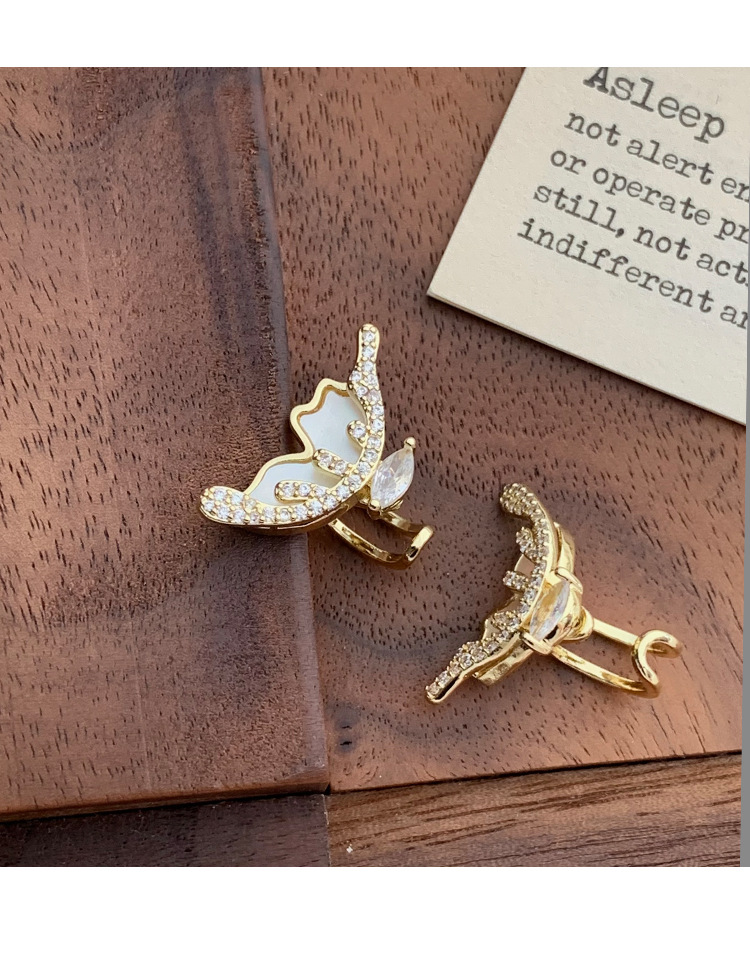 高级感镶钻贝母蝴蝶精灵耳夹小众设计感气质无耳洞耳骨夹轻奢耳饰