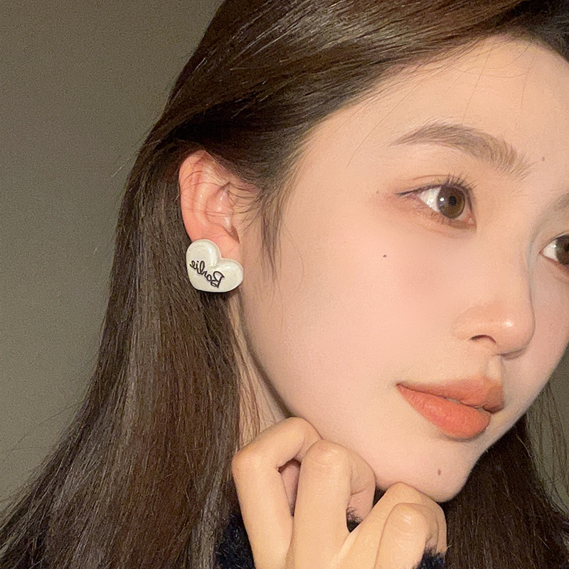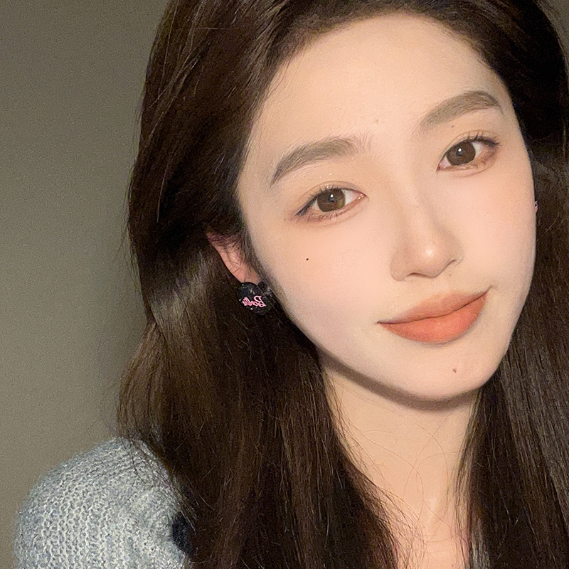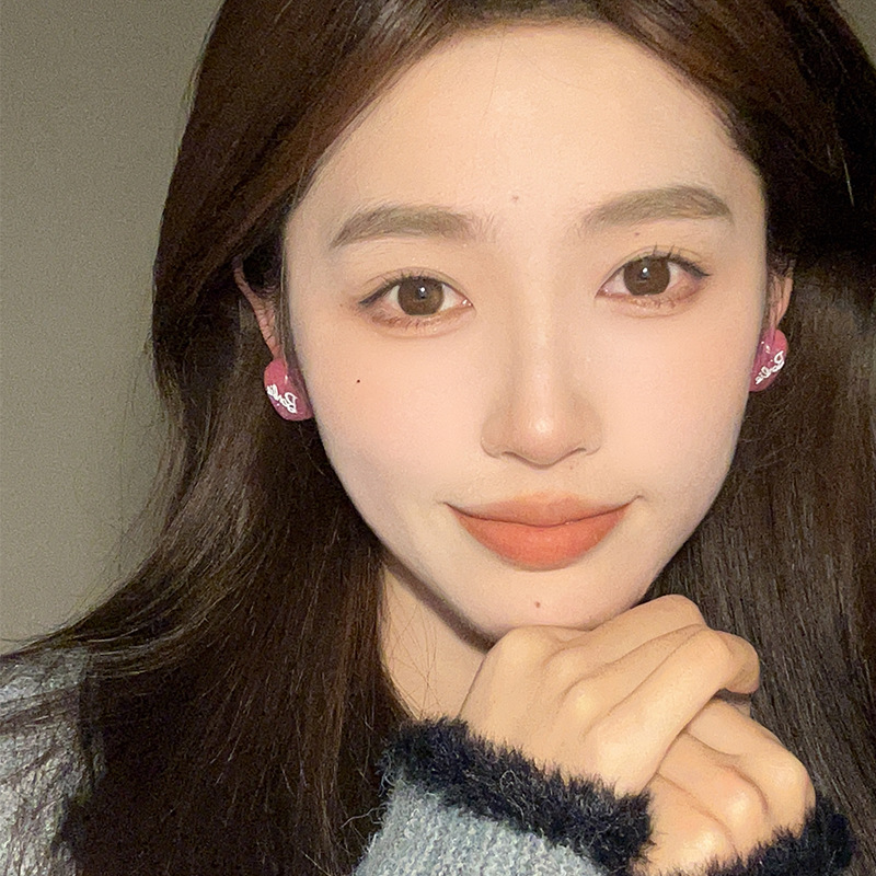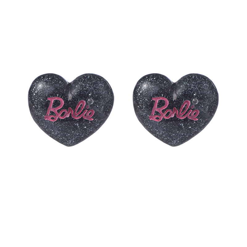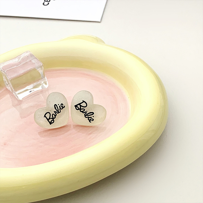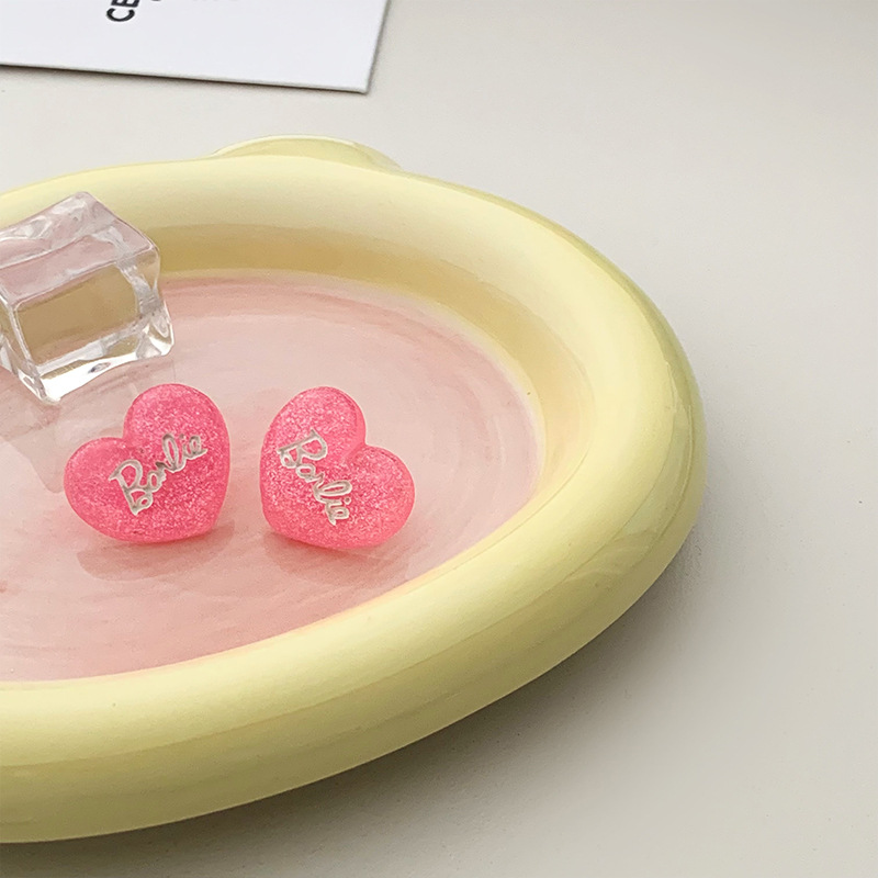 闪闪芭比粉色爱心字母耳环女小众甜美气质耳钉设计感草莓软糖耳饰