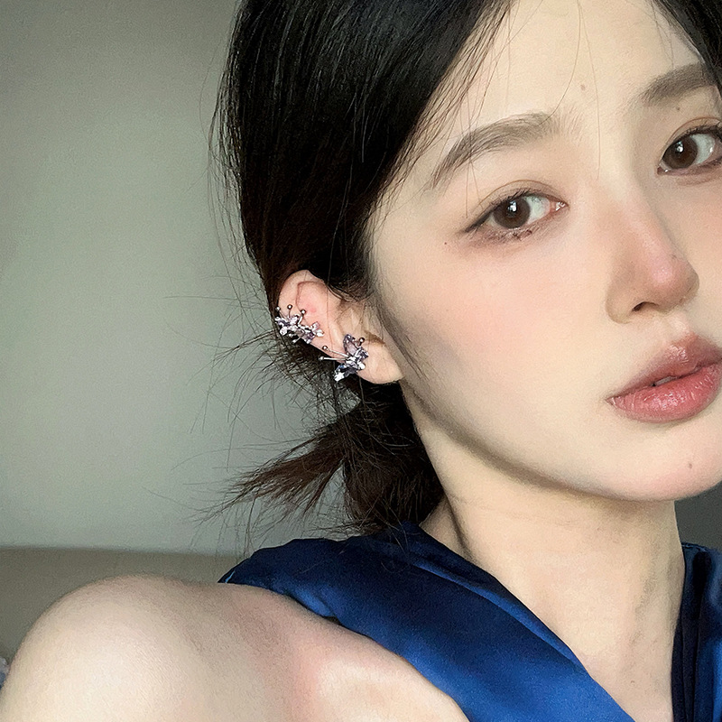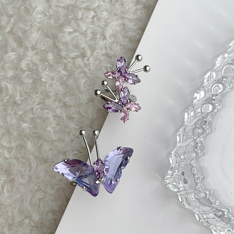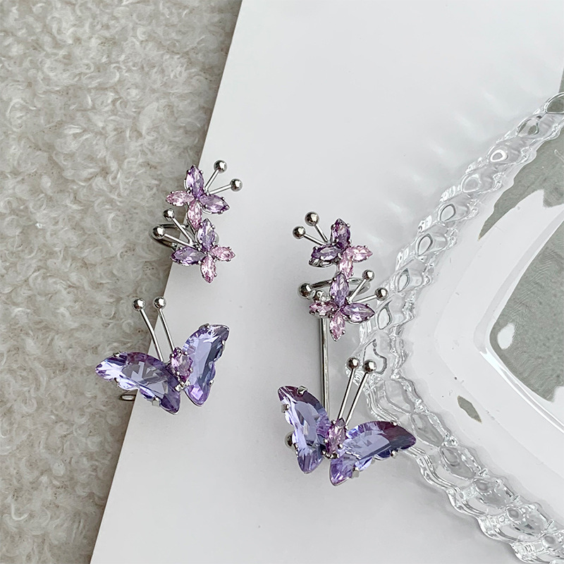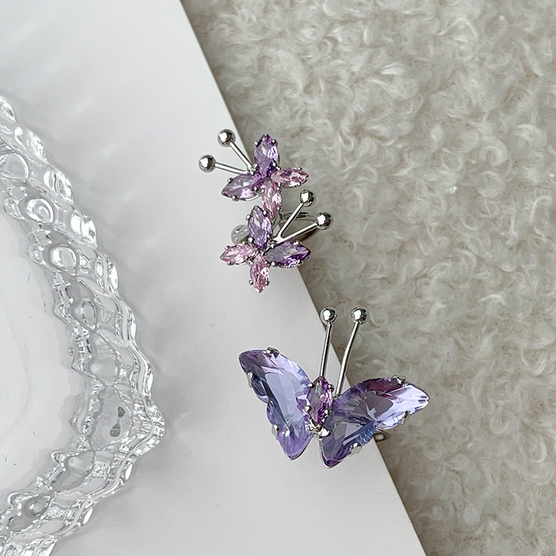 精致独特紫色水晶蝴蝶耳夹无耳洞耳骨夹女甜酷风气质小众设计耳饰