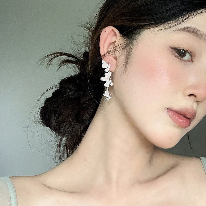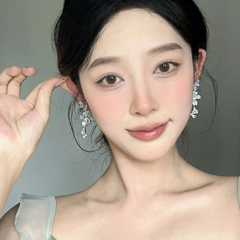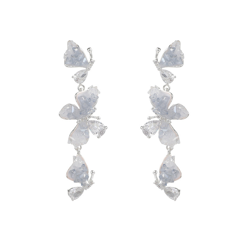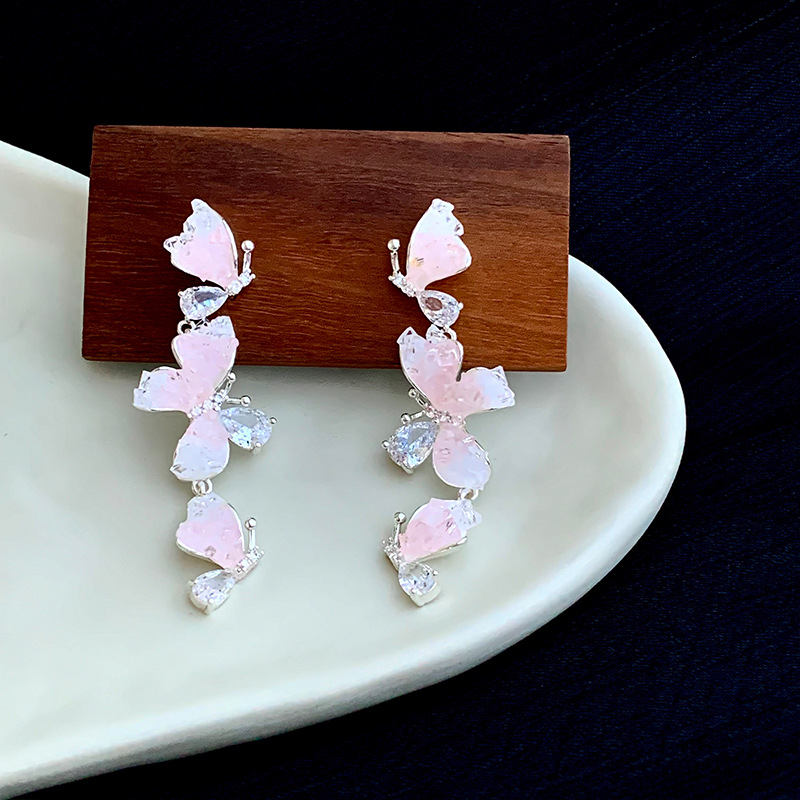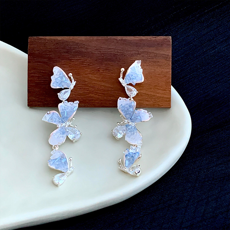 渐变水晶蝴蝶锆石耳环高级感甜美长款耳坠小众清新新款耳钉耳饰女