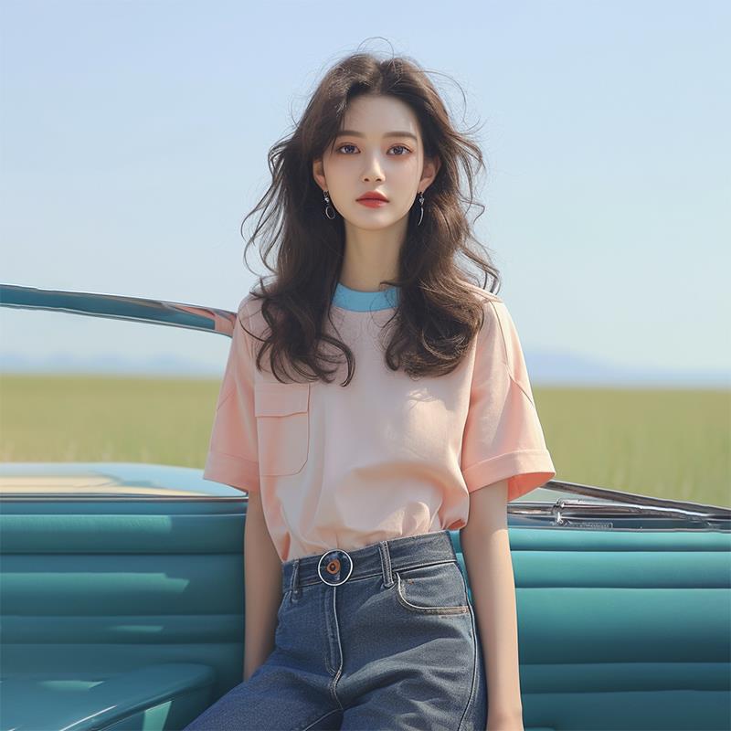 韩系chic洋气独特别致漂亮上衣宽松百搭多巴胺粉色短袖T恤女夏季
